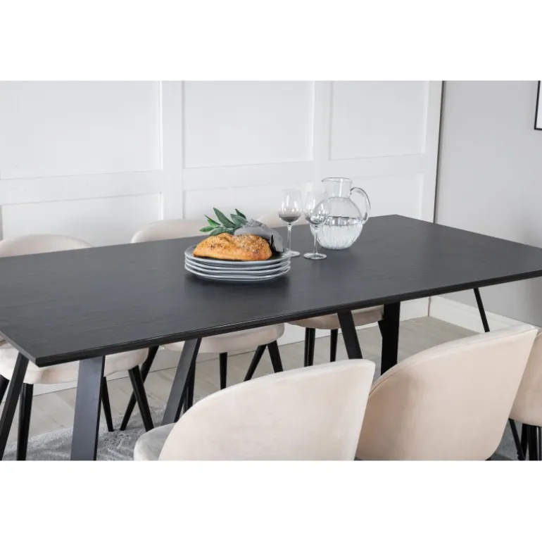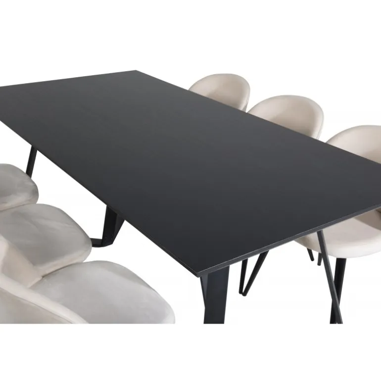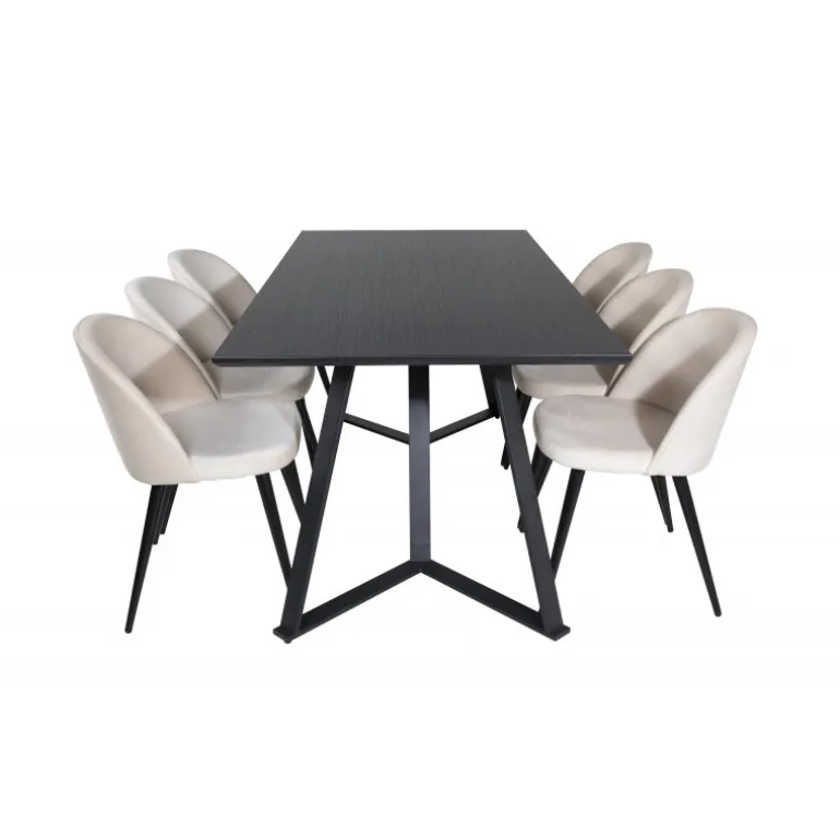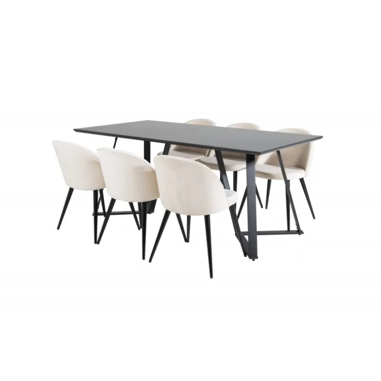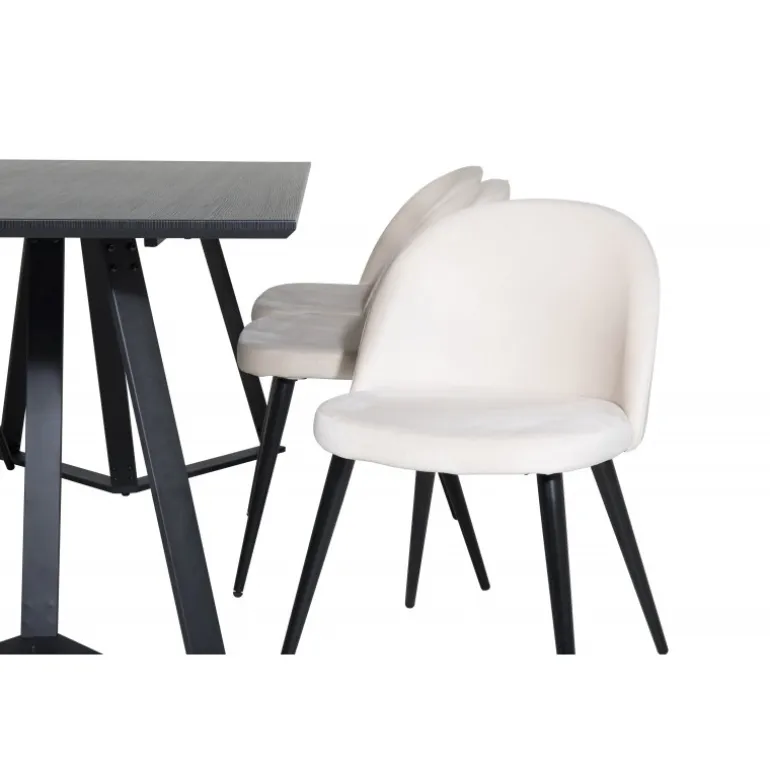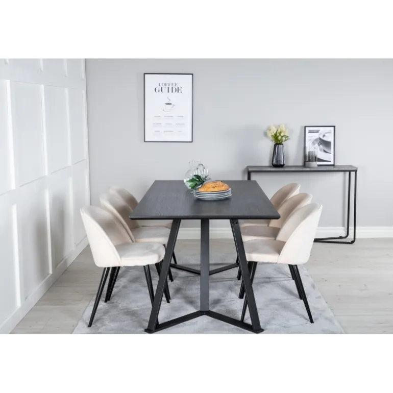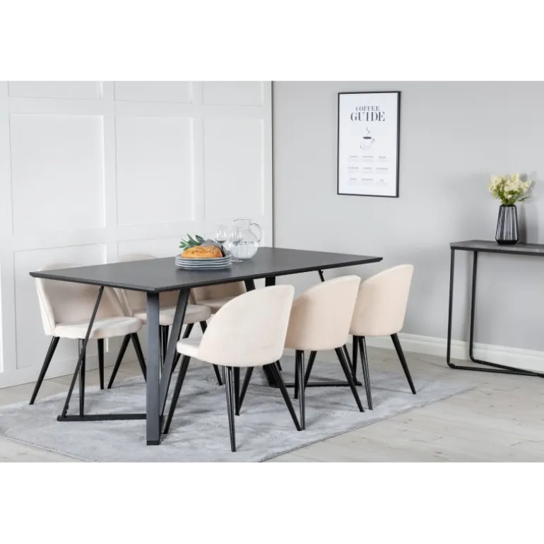 Køb et færdigkomponeret Spisebordssæt, der både er tidssikkert og praktisk! Her kombinerer vi vores Marina spisebord med vores luksuriøse beige spisebordsstole Velvet. Lad hjemmets hjerte blive præget af din nye øjenfaldende Spisebordssætløsning.