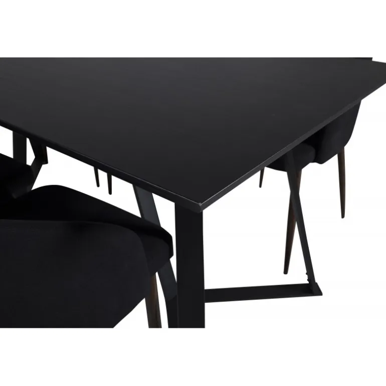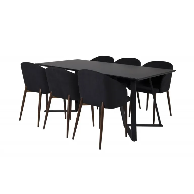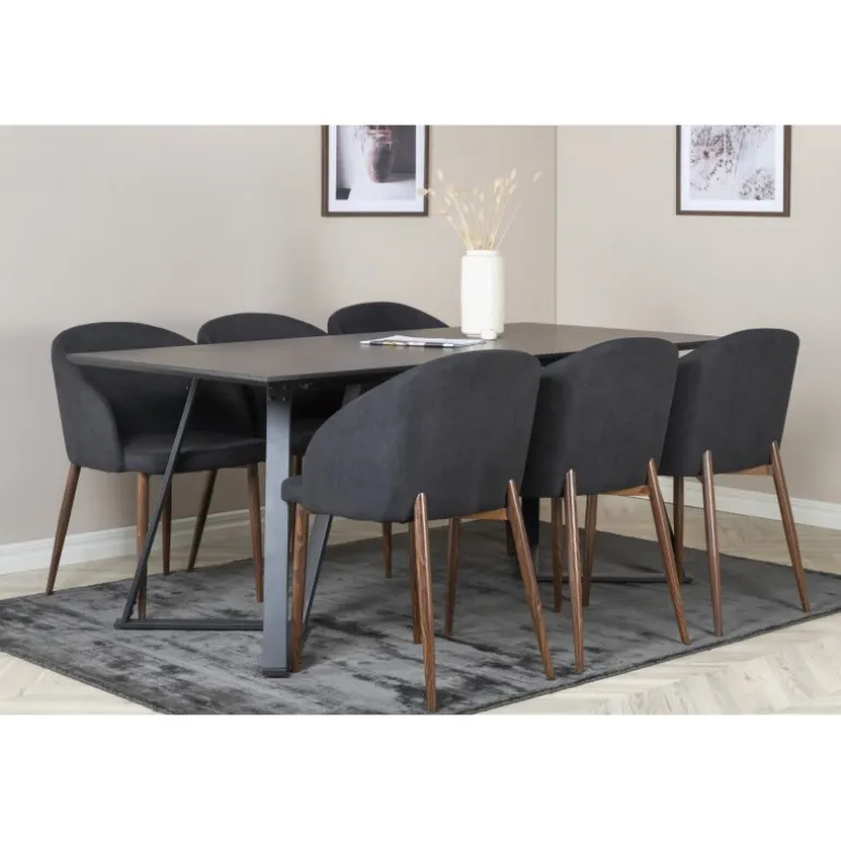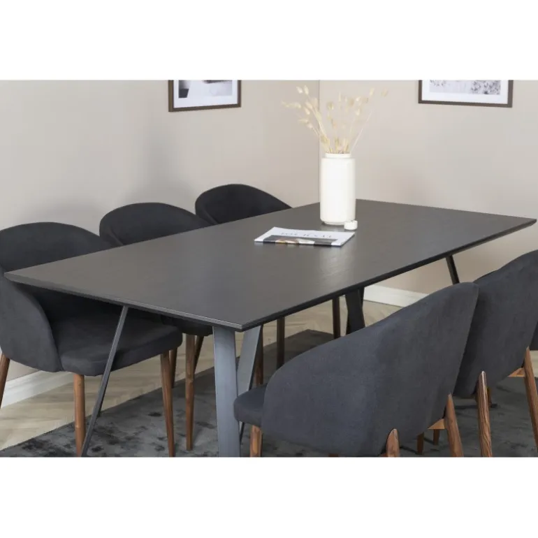 Vores populære Marina spisbord i et enkelt design. Her sammen med lækre spisebordsstole i Arch-serien. Stolens rustikke træben kombineres perfekt med den sorte elegance. Indret i stuen og lad hjemmets hjerte præges af din nye iøjnefaldende Spisebordssæt.