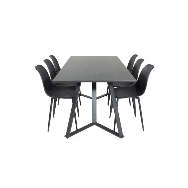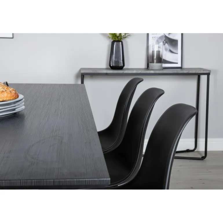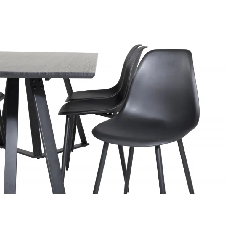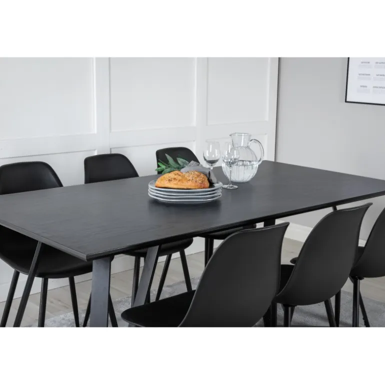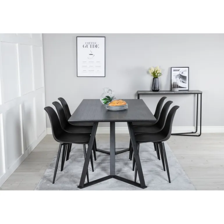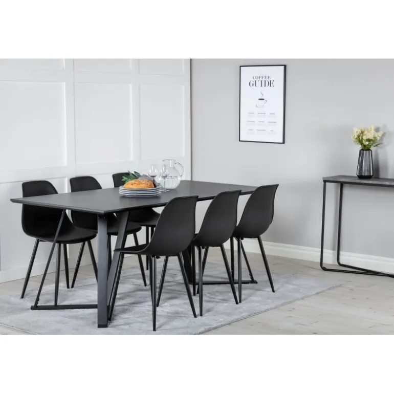Stilfuldt! Med Marina Spisebordssættet, der inkluderer Marina spisebordet og Polar spisestolene, får du en kombination af moderne, hyggelig og tidløs design. Dette sæt er perfekt til enhver spisestue og tilføjer et elegant præg med sin sorte farve og robuste materialer. Marina spisebordet er lavet af MDF og stål, mens Polar spisestolene er fremstillet af plastik og stål, hvilket sikrer både holdbarhed og komfort. Bordet kræver enkel samling, og med sine rummelige dimensioner er det ideelt til både små og store sammenkomster.
