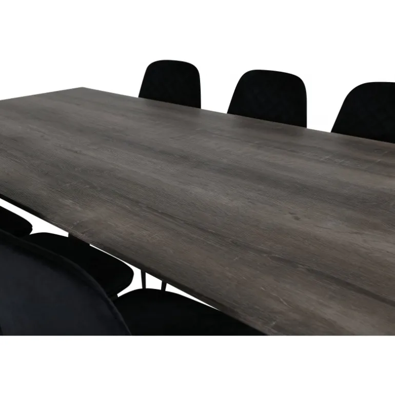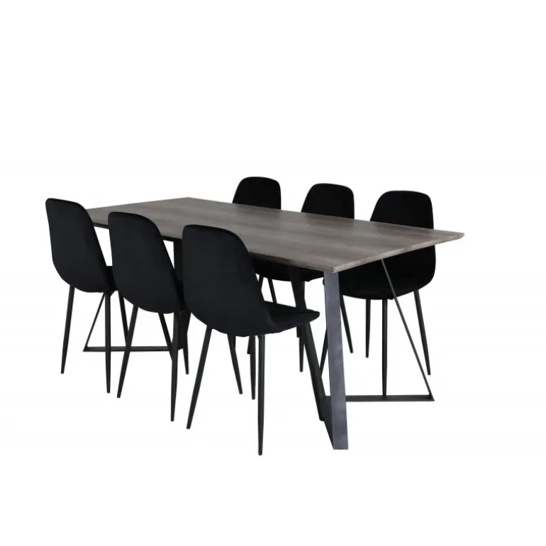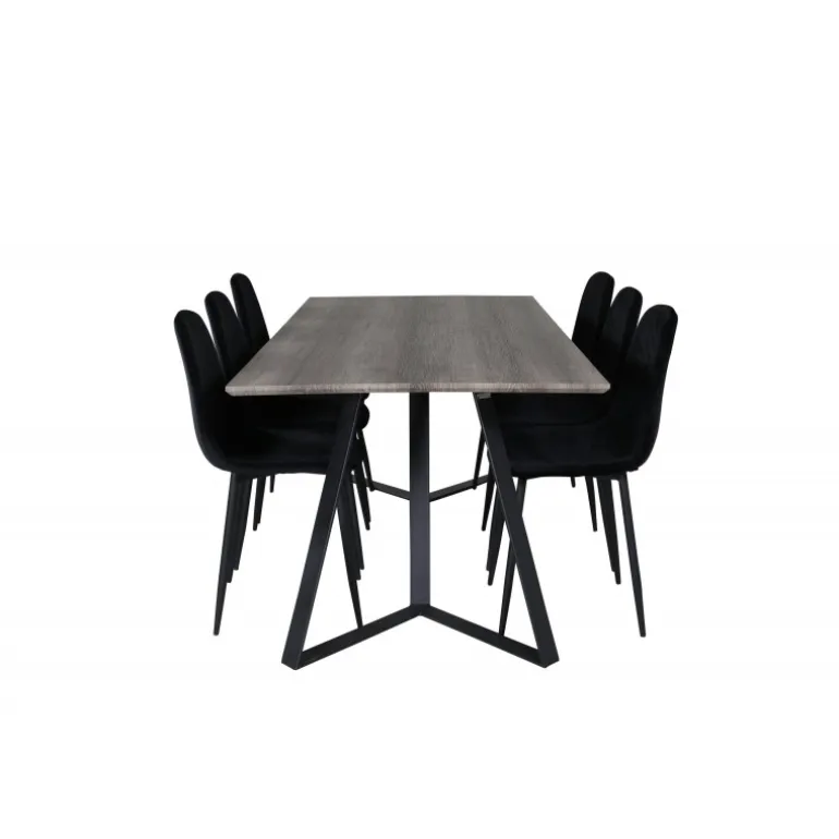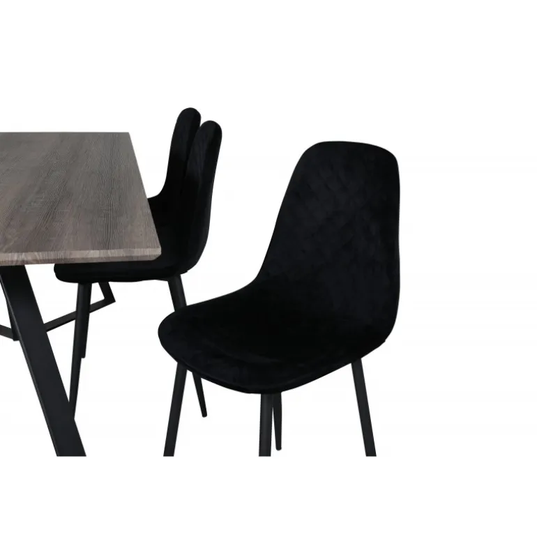 - Elegant design: Sorte fløjlsstole kombineret med et gråt MDF-bord.