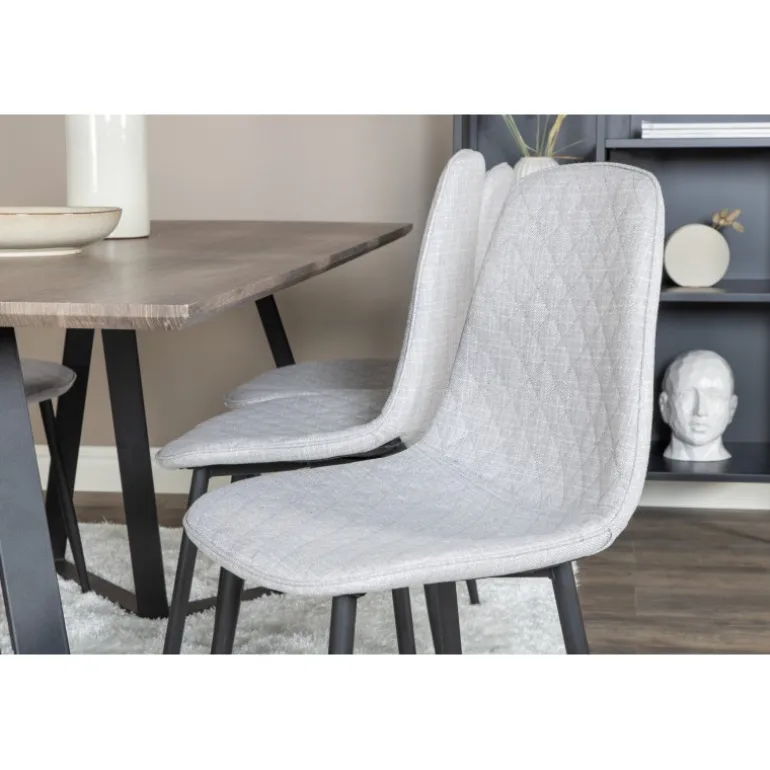 Vores populære spisebordsstole i Polar-serien inviterer til lange, hyggelige øjeblikke omkring spisebordet. Her sammen med vores grå Marina spisebord med smukt benstel. Sæt dig ned i denne indbydende og stilfulde Spisebordssæt til lange middage med familien!