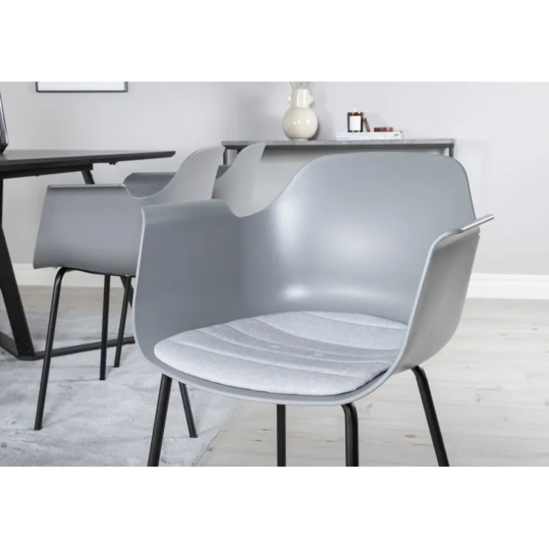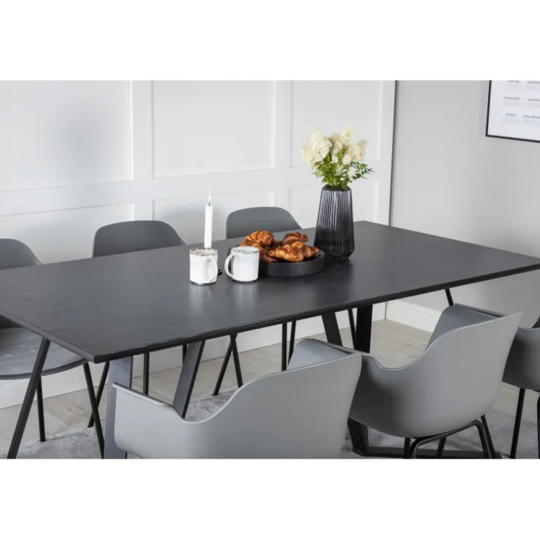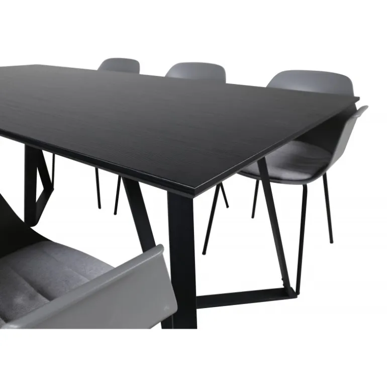 - Elegant Farve: Sort bordplade og grå stole, der matcher de fleste indretninger.