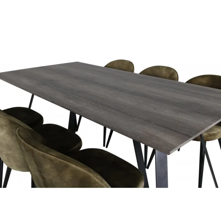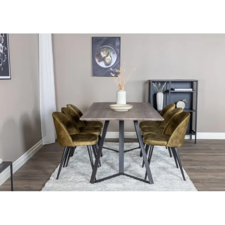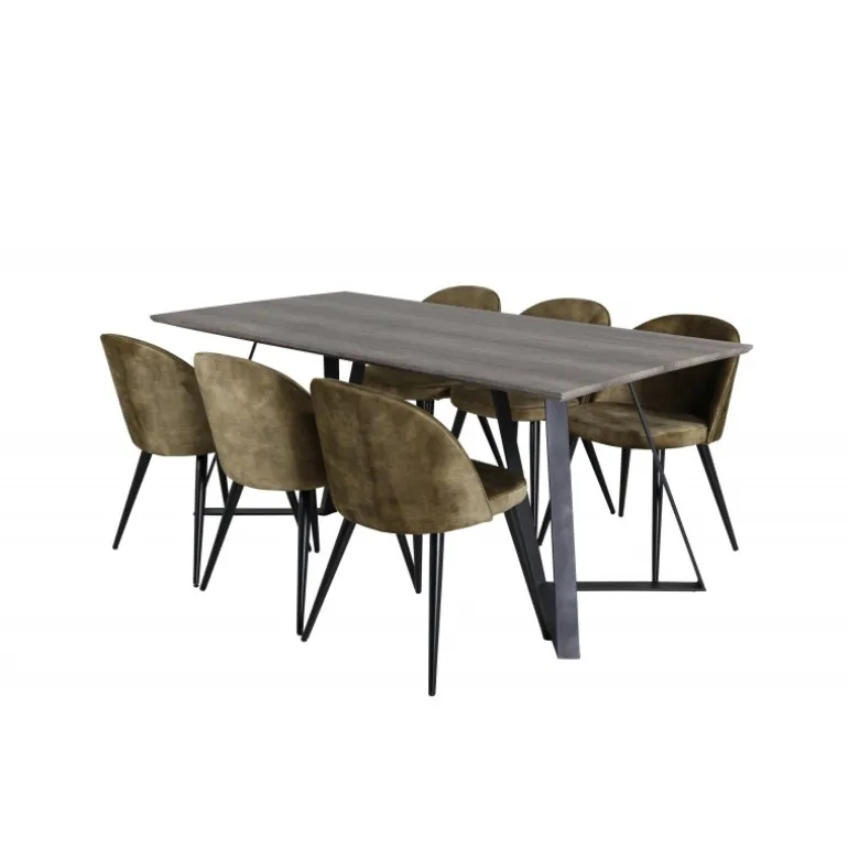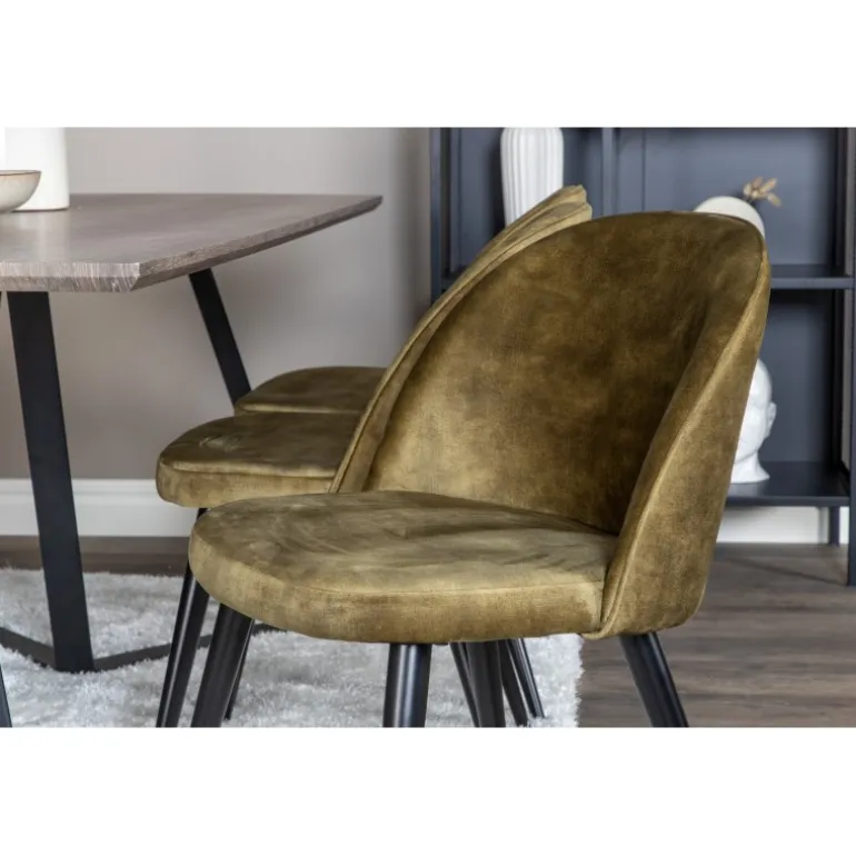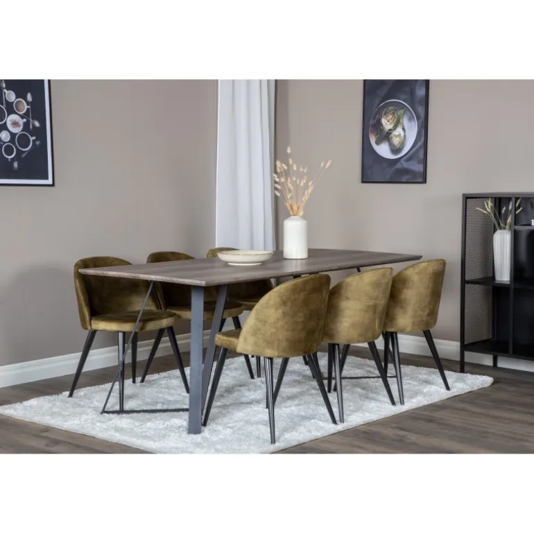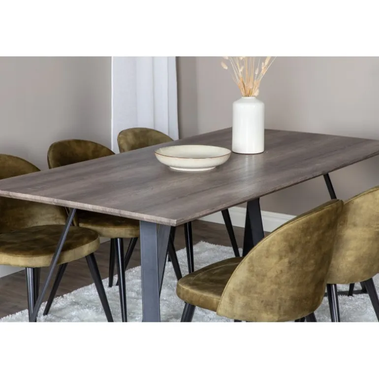 Oplev Marina Rektangulær Spisebordssæt – det perfekte valg for dem, der søger et moderne og indbydende spisebordssæt til stuen. Dette klassiske spisebord i elegant stil kombineres med lækre fløjlsstole fra Velvet-serien, hvilket gør det til en øjeblikkelig blikfanger. Med plads til alle er dette sæt ideelt til både hverdag og festlige sammenkomster. Bordet og stolene er lavet af holdbare materialer som MDF, stål og bøjetræ, hvilket sikrer langvarig holdbarhed. Tilgængelig i flere farvekombinationer for at passe til din indretning.