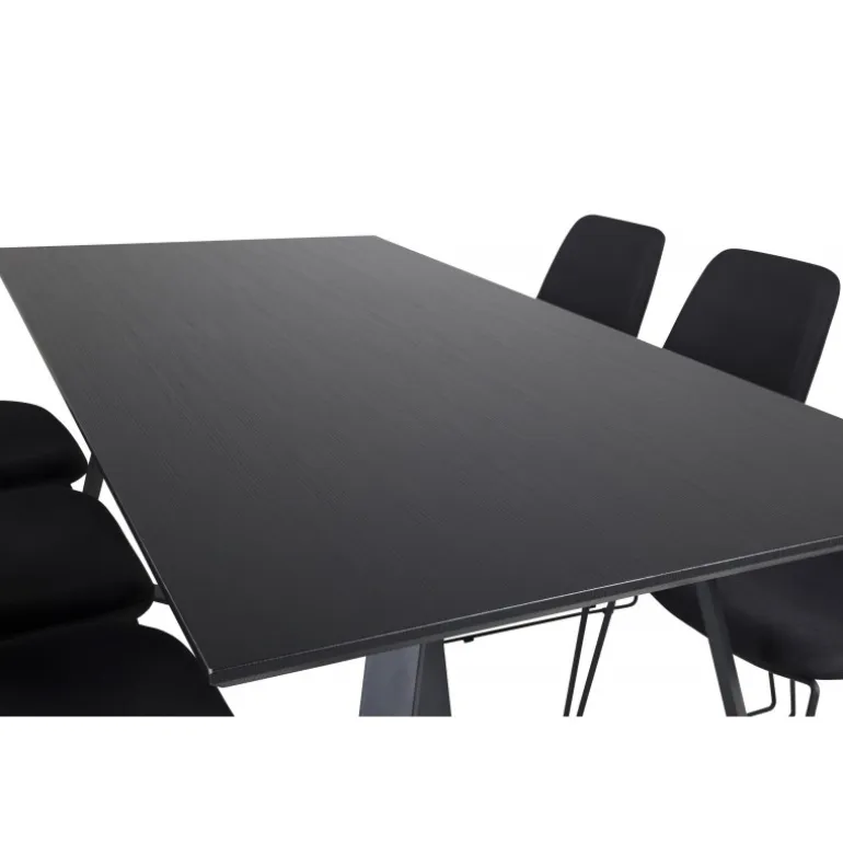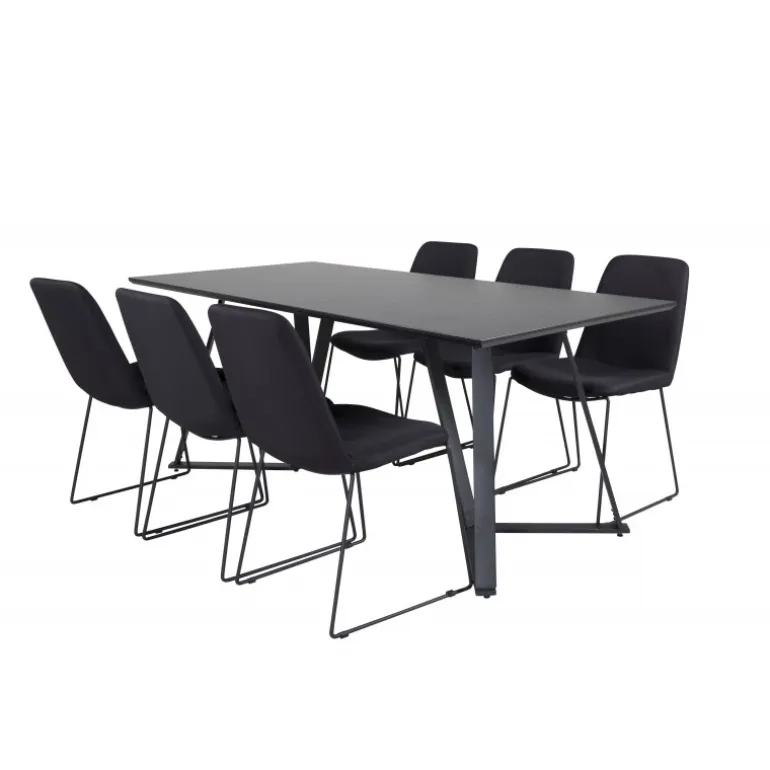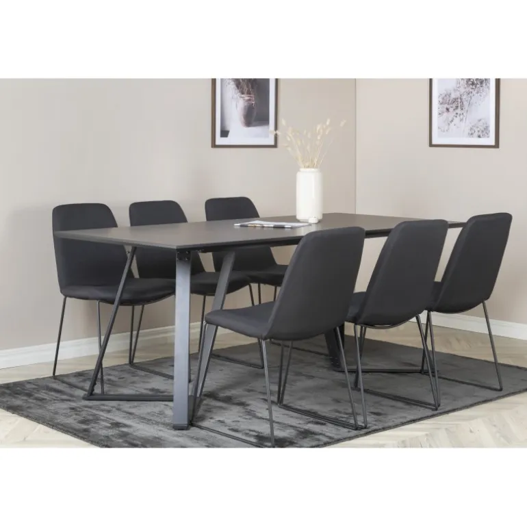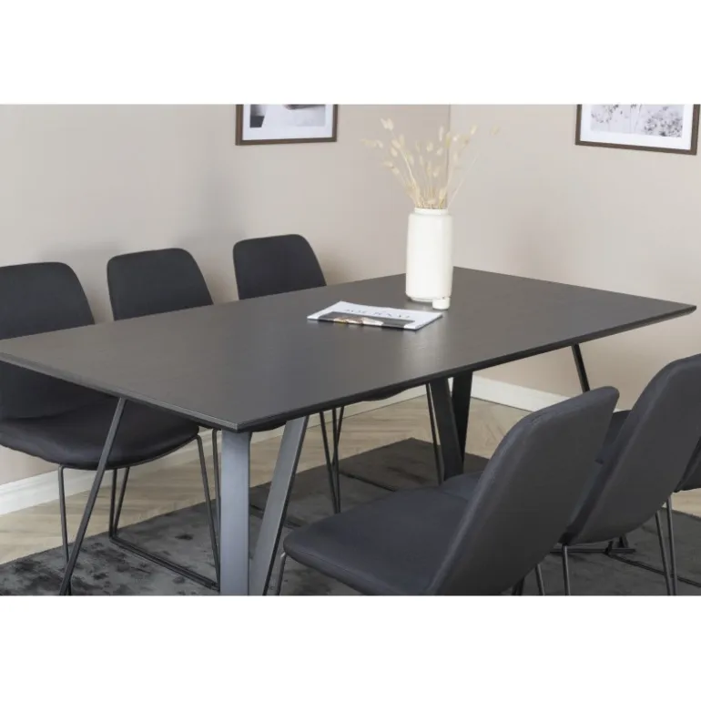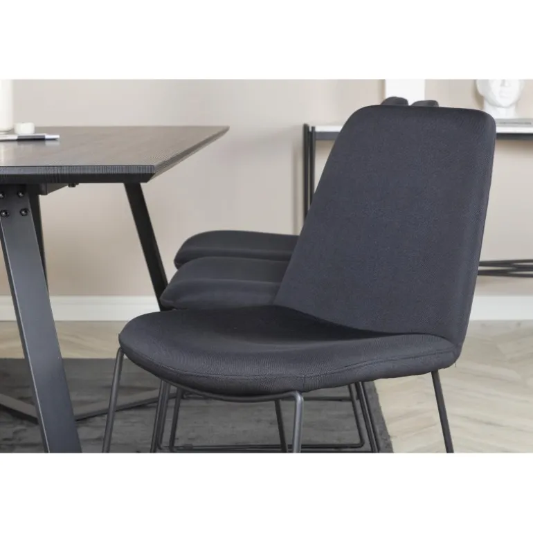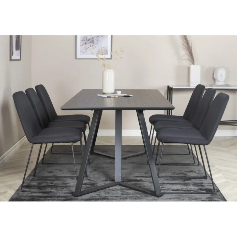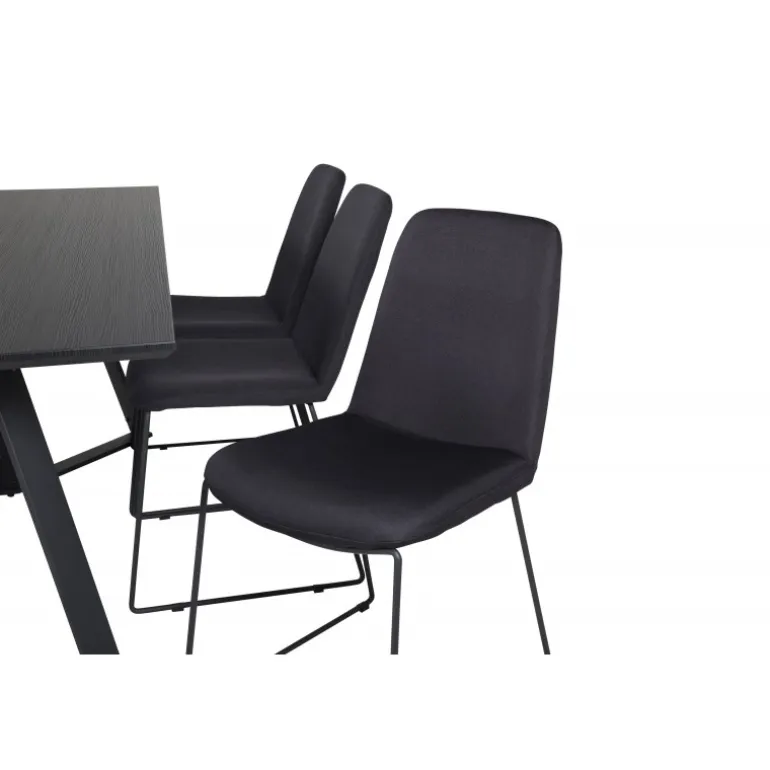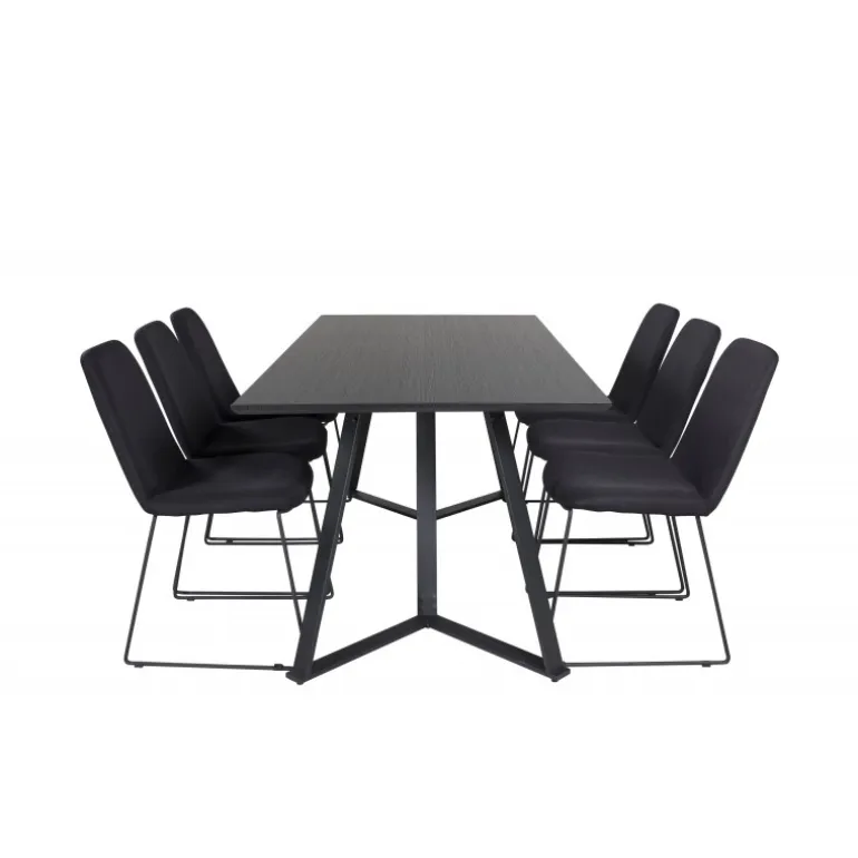 Et fuldt sort madgruppe i moderne design, der passer til alle lejligheder! Klassisk spisebord i klassisk stil sammen med spisebordsstole i serien Muce er den perfekte kombination til stuen. Inviter dine kære hjem og undgå bekymringer om, hvorvidt alle kan blive siddende behageligt.
