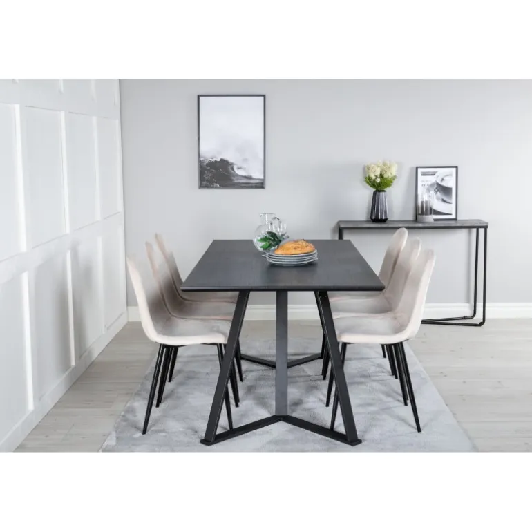 Moderne og hyggeligt! Marina Rektangulært Spisebordssæt kombinerer et sort spisebord med beige polar spisebordsstole og skaber et samlingspunkt, der gør hjemmet ekstra indbydende. Stolene er robuste og komfortable, hvilket gør dem perfekte til lange middage og hyggelige stunder med gode venner.