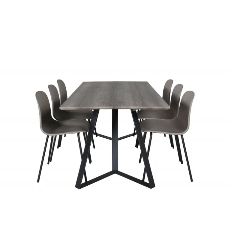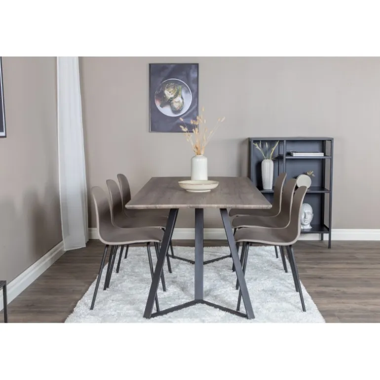 Vores populære spisestole Arctic i den lækre muldvarpefarve Khaki. Her sammen med spisebordet Marina i et slående design. En indbydende og iøjnefaldende Spisebordssæt, der skaber en varm følelse i rummet! Perfekt til indendørs brug, dette sæt kombinerer stil og funktionalitet, hvilket gør det til et ideelt valg for enhver spisestue.