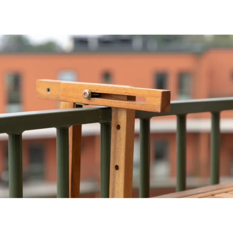 Balkonbordet Marion er det perfekte bord til den lille altan eller balkon. Med sit stilfulde design og enkle konstruktion kan du nemt folde bordet ud eller sammen efter behov! Fremstillet af akacietræ, sikrer dette bord både holdbarhed og æstetik. Marion cafébord passer perfekt til udendørs brug og kan let opbevares, når det ikke er i brug.