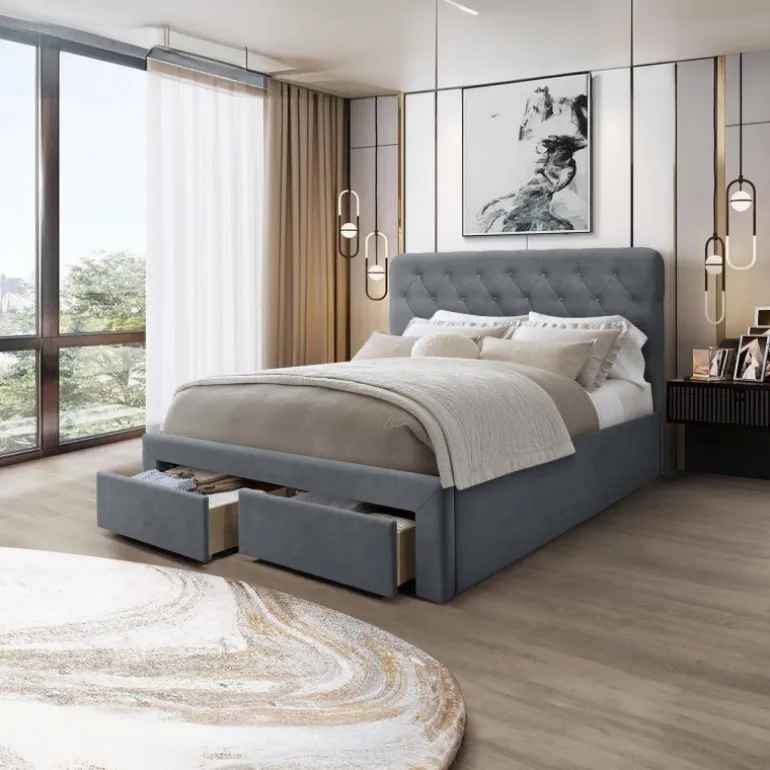 - Elegant design: Grå Velour, der tilføjer et luksuriøst præg til dit soveværelse.