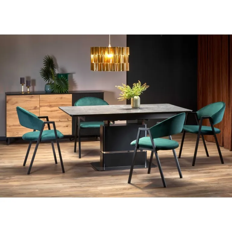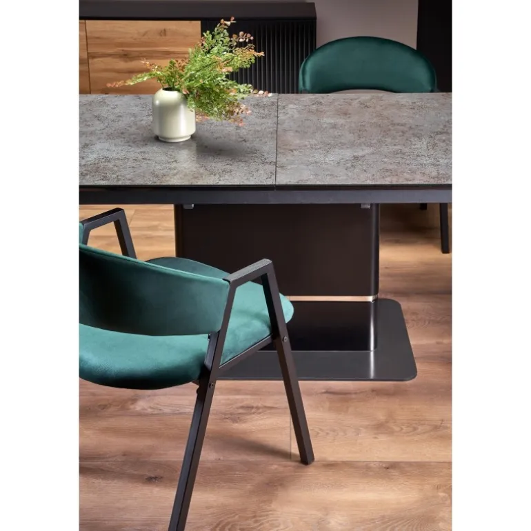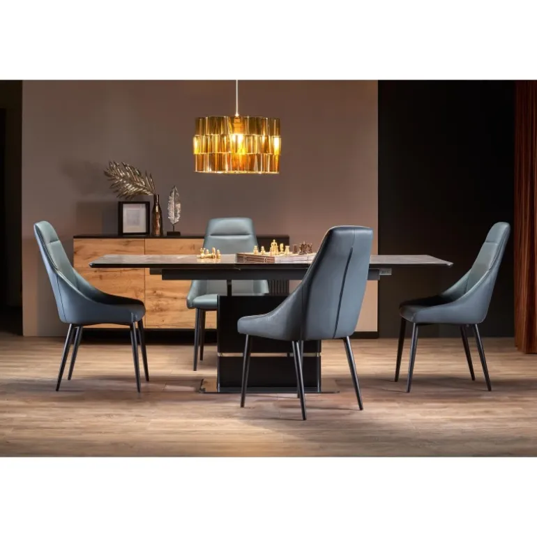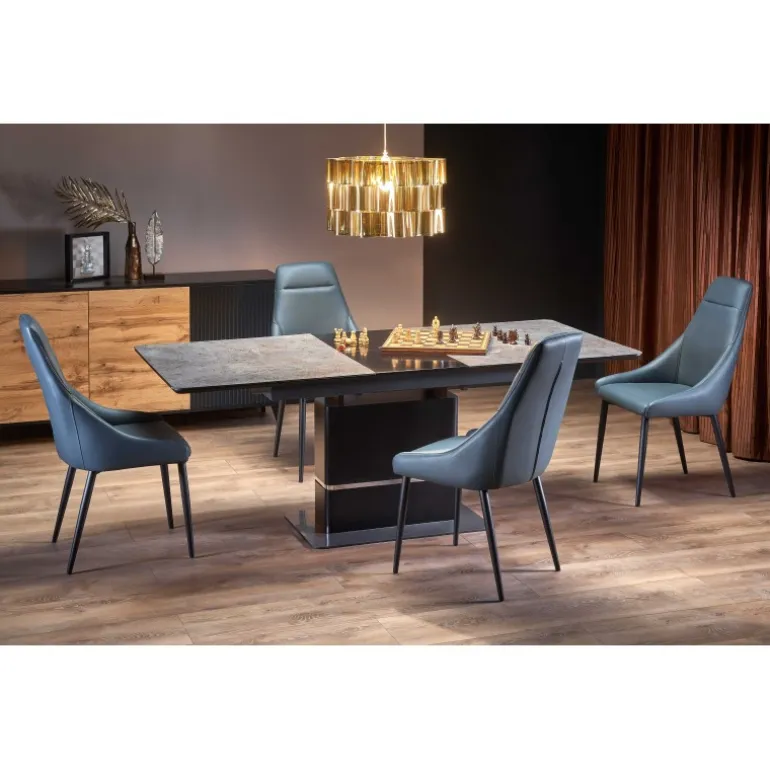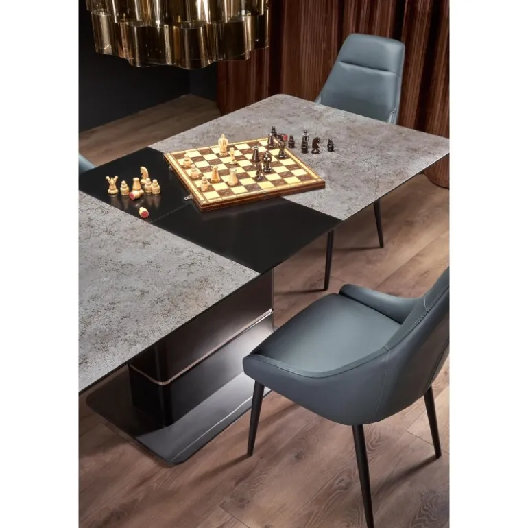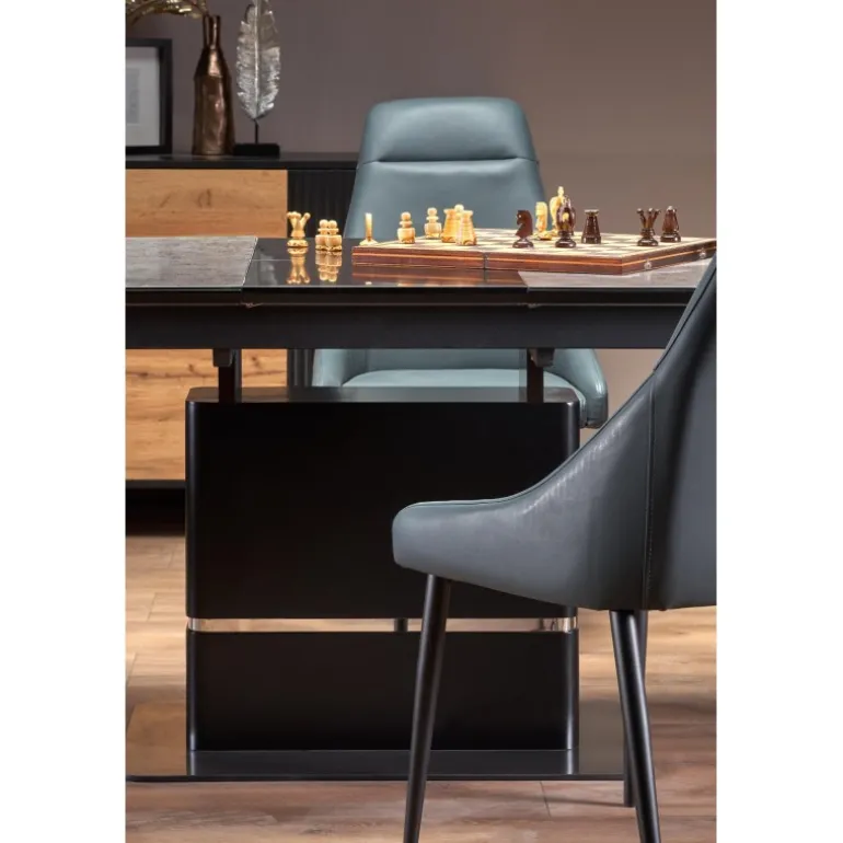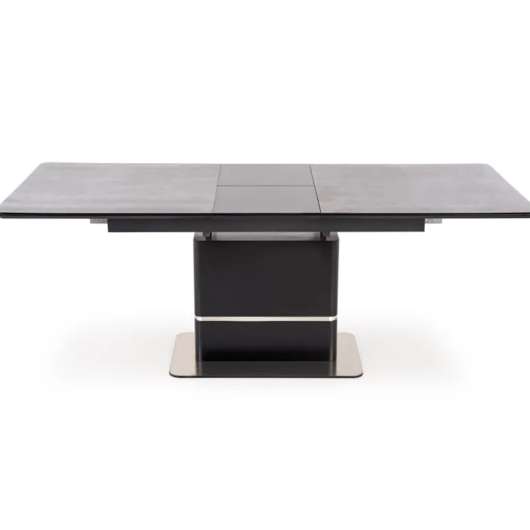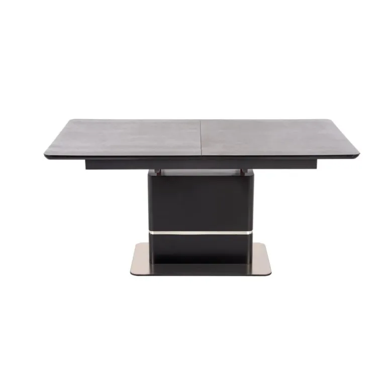 Oplev elegance og funktionalitet med vores MARTIN bord i mørkegrå med Sorte ben. Dette Spisebord med udtræk er perfekt til både små og store sammenkomster, takket være dets justerbare længde fra 160 cm til 200 cm. Bordpladen er lavet af glas og lakeret MDF, mens benene er fremstillet af rustfrit stål for maksimal holdbarhed. Med sin stilrene, mørkegrå top og Sorte ben passer dette bord perfekt ind i enhver moderne indretning.