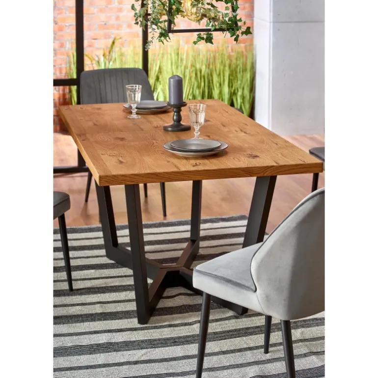 - Materiale af høj kvalitet: Bordplade af finer med massivt træ på kanterne og ben af pulverlakeret stål.