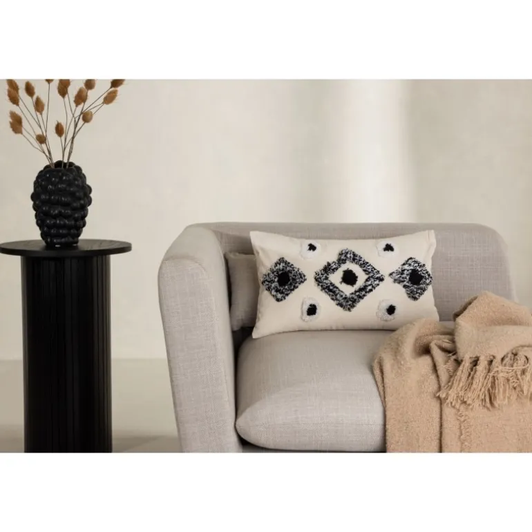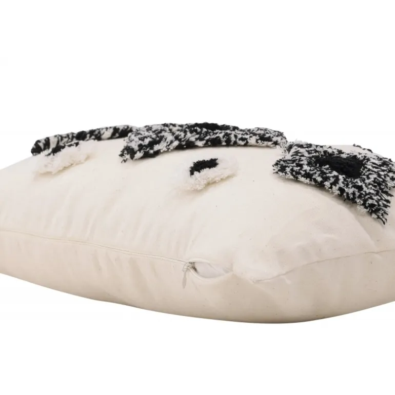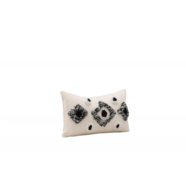 Melissa, vores populære pudebetræk, der kombinerer komfort med moderne design! Dette aflange pudebetræk har en hvid basefarve og et abstrakt mønster i tuftet materiale i både hvid og sort farve. Fremstillet af en perfekt blanding af polyester og bomuld, som er både fleksibel og holdbar. Skab et flot blikfang i sofagruppen med et trend-sikkert pudebetræk, der nemt kan matches og kombineres med andre pudebetræk!