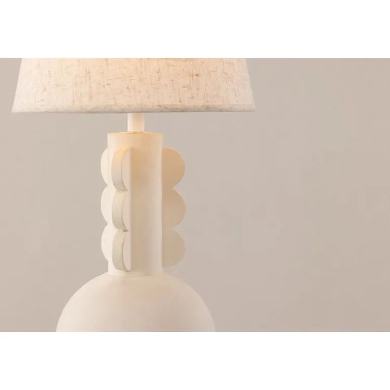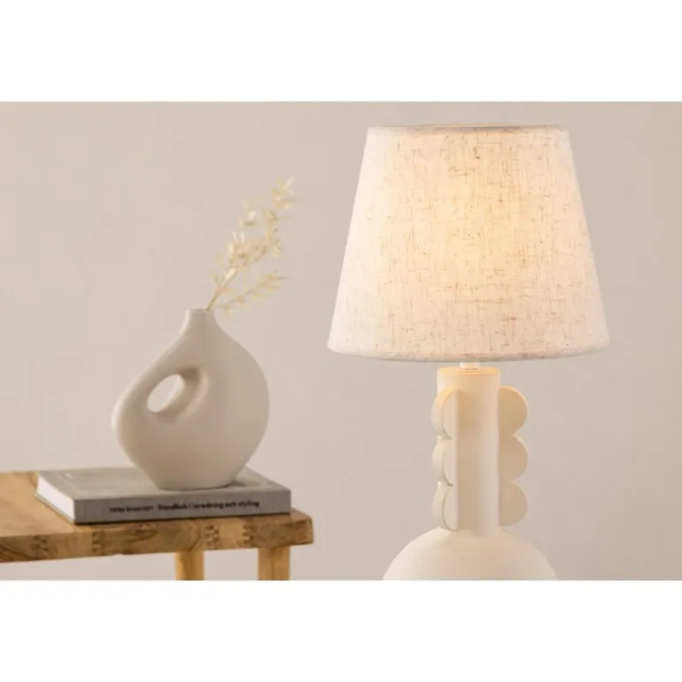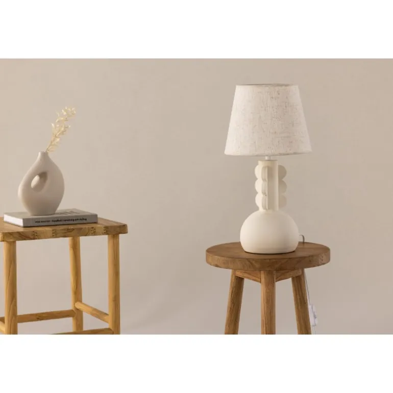- Beige hørskærm, der skaber et blødt og indbydende lys.