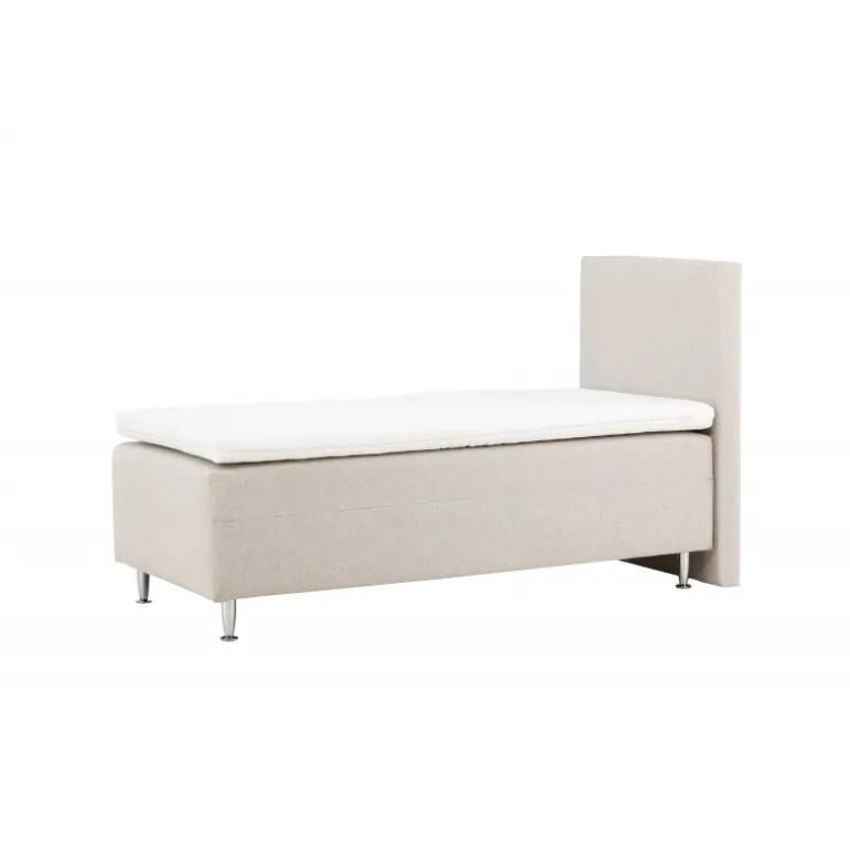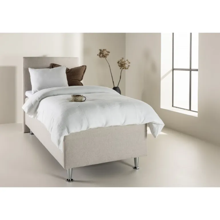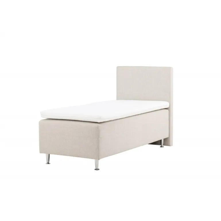 Velkommen til din personlige oase af ro og komfort med vores vidunderlige seng, Mesa! Mesa er ikke blot en seng; det er en omfavnelse af afslapning og en invitation til drømmende søvn. Med sit design og det beige stof skaber Mesa den perfekte atmosfære for en nat fuld af komfort og ro. Mesa er en 90 cm bred rammeseng beklædt med et blødt og smidigt beige stof. De beige nuancer giver en følelse af ro og fred til dit soveværelse, hvilket er præcis, hvad du har brug for at slappe af og slippe hverdagens stress. Stoffet føles som en kærlig omfavnelse, når du kryber i seng. Sengen står fast på plastikben, hvilket giver den stabilitet og holdbarhed. Du kan føle dig tryg og sikker, når du lægger dig til rette i Mesa hver nat. Mesa har en fast fasthed, der tilbyder en balanceret følelse af støtte og komfort for en god nats søvn. Den høje sengegavl er en oase for dig at læne dig imod, når du vil nyde en bog, en film eller blot slappe af i sengen. Pynt din Mesa med bløde puder for at skabe den ultimative hyggelige atmosfære i dit soveværelse. Når du kryber i seng, kan du være sikker på, at du vil opleve en fredfyldt nattesøvn. Mesa er mere end blot en seng; det er en invitation til at omfavne skønheden ved søvn og nyde hvert øjeblik af afslapning. Bestil din Mesa seng i dag og skab din egen lille oase af ro og velvære i dit soveværelse.