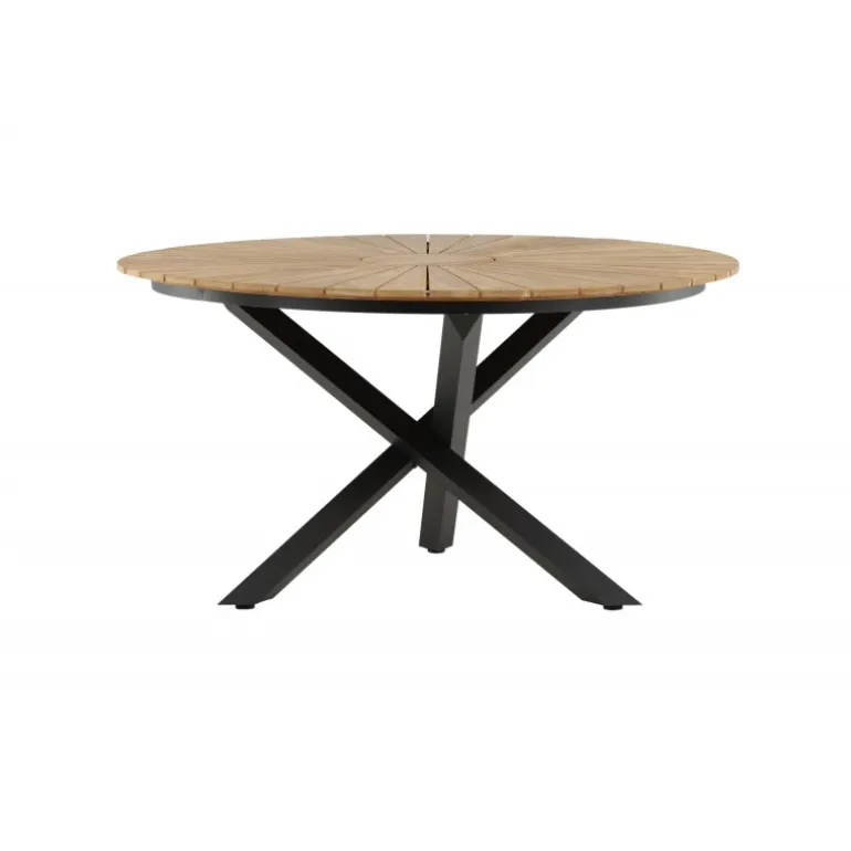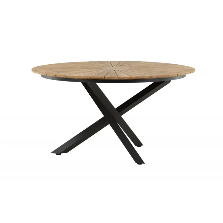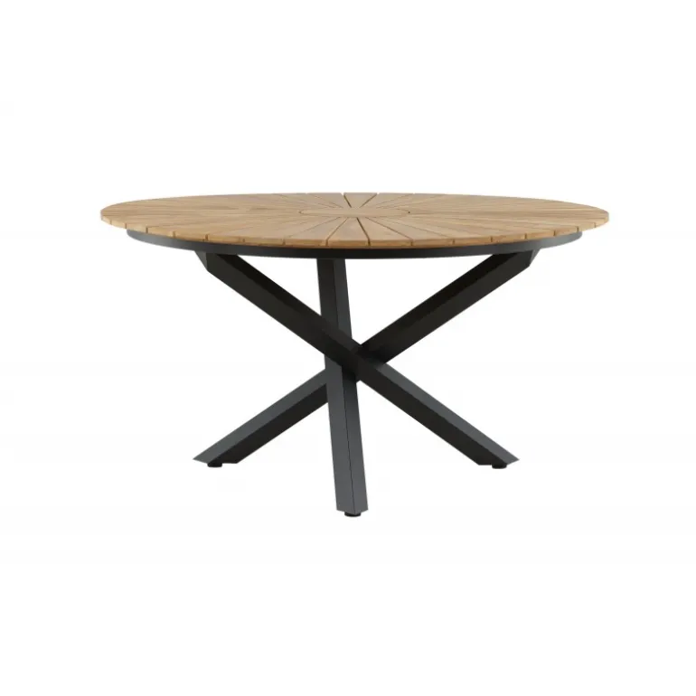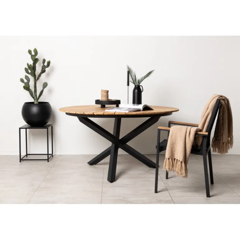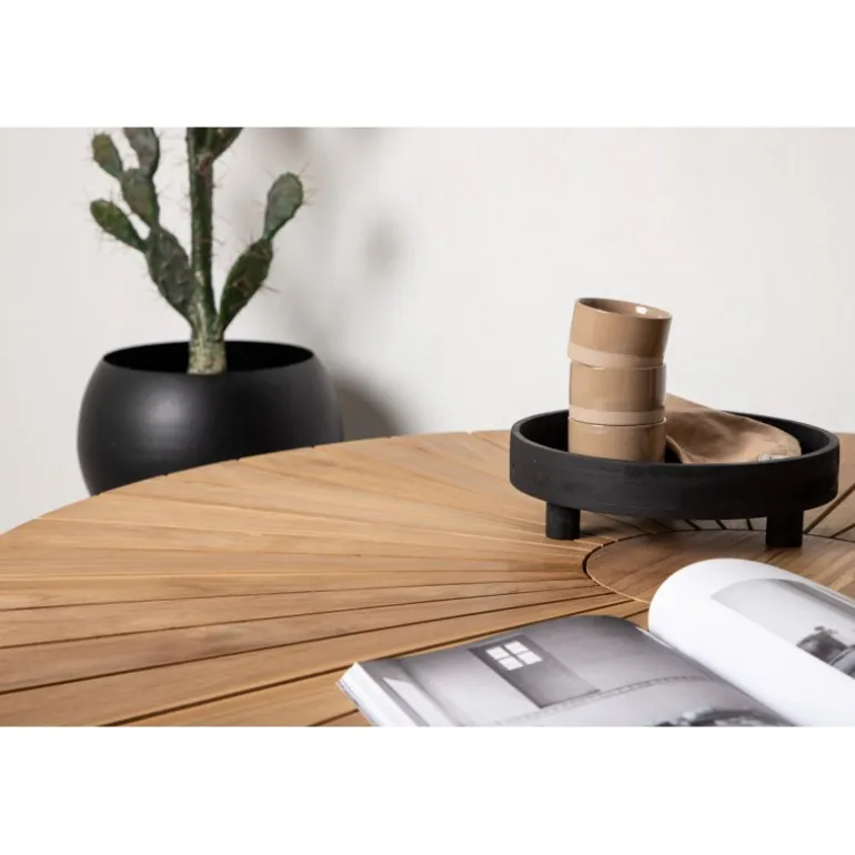 - Smukt design: Rund bordplade i teak og sort metal understel.