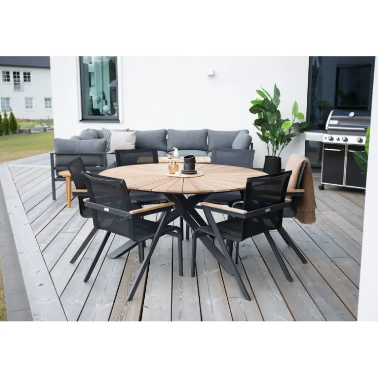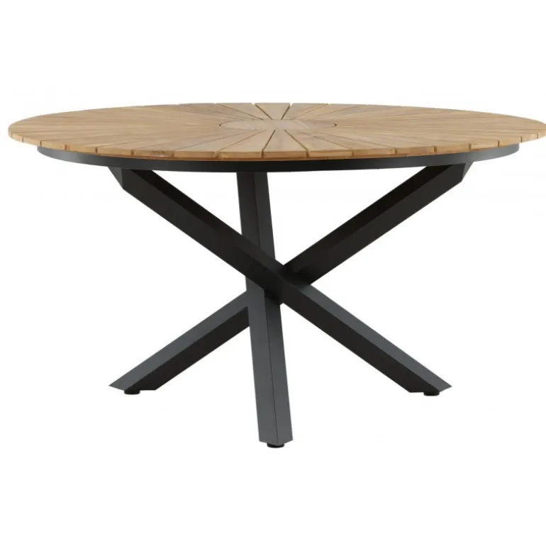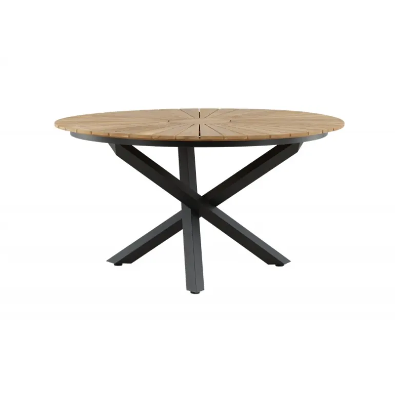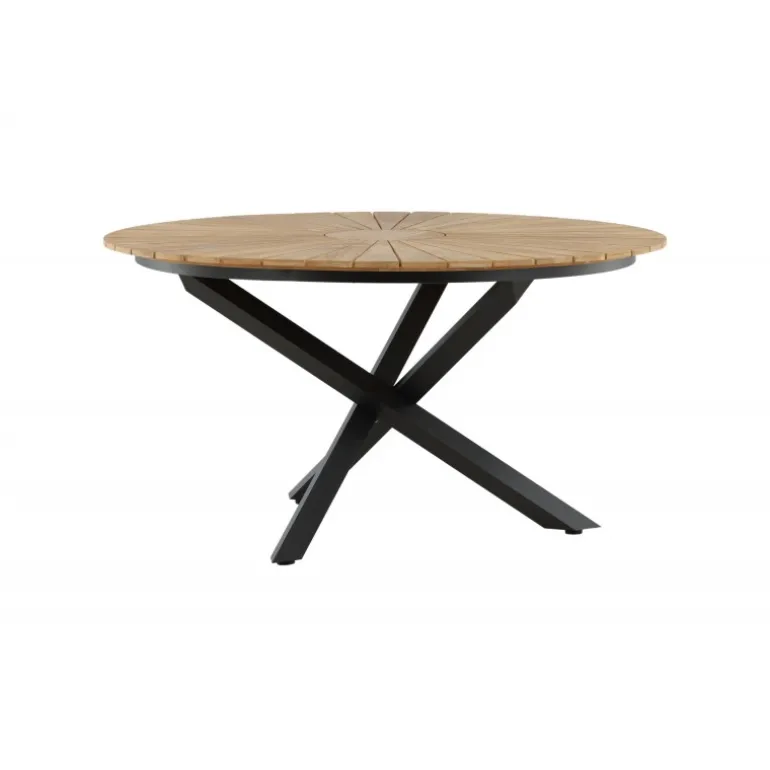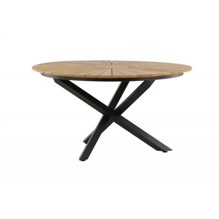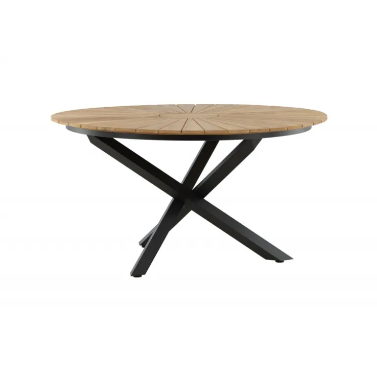 - Smukt design: Rund bordplade i teak og sort metal understel.