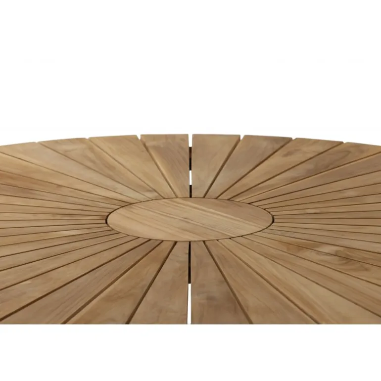 Mexico – Et rundt spisebord med alt det rigtige: Smukt, smart og holdbart! Her kan du samle dine kære omkring et bæredygtigt spisebord i lækkert design, og ingen risikerer at sidde på kanten. Bordpladen er i smuk teak og understellet i sort metal. Møblér i udendørsområdet eller på altanen og nyd måltider under åben himmel denne sommer! Vedligeholdelsesråd: Vores teakmøbler er produceret af certificeret teak, som er dyrket med henblik herpå og ikke fældet fra sårbare regnskove. Som en af de mest holdbare træsorter indeholder teak meget olie, hvilket normalt er nødvendigt, så materialet ikke sprækker. Fordi træsorten naturligt indeholder meget olie, behøver møblerne ikke blive imprægneret så ofte.