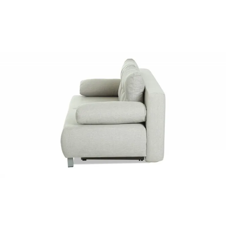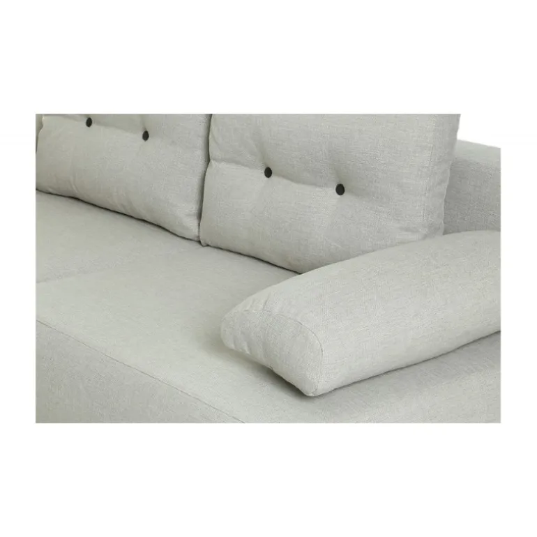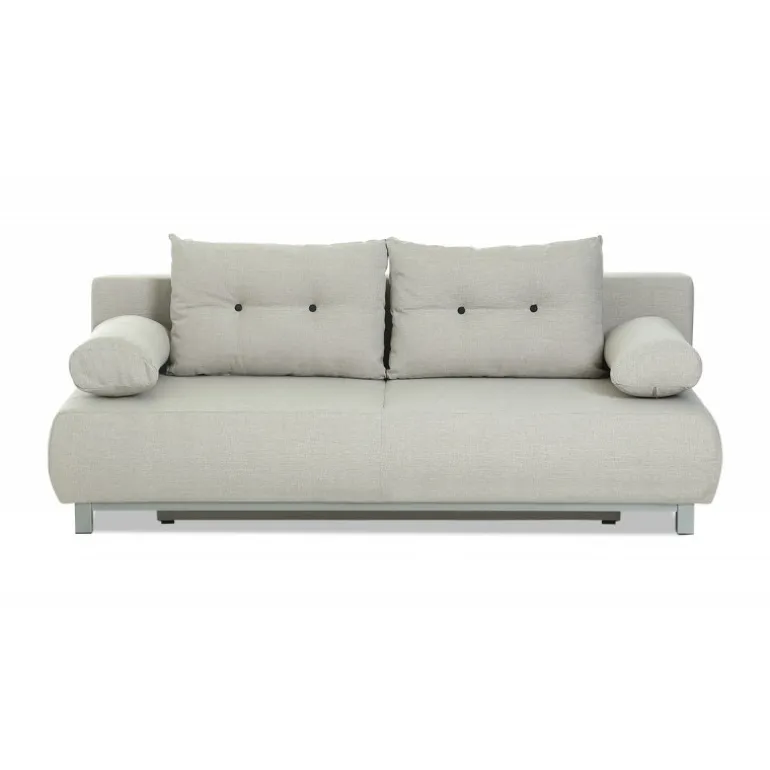 Mikado sovesofa med rummeligt magasin og udslånings funktion, som forvandler sofaen til en bekvemmelig soveplads for 2. Sofaen, der med sit smarte og unge design, egner sig særlig godt til teenageværelset. Mikado har springindlæg med en medium/hård liggekomfort. Sofaen er betrukket med et lyst og slidstærkt, strukturvævet møbeltekstil med mørke knapper og hævet på stabile metal ben.