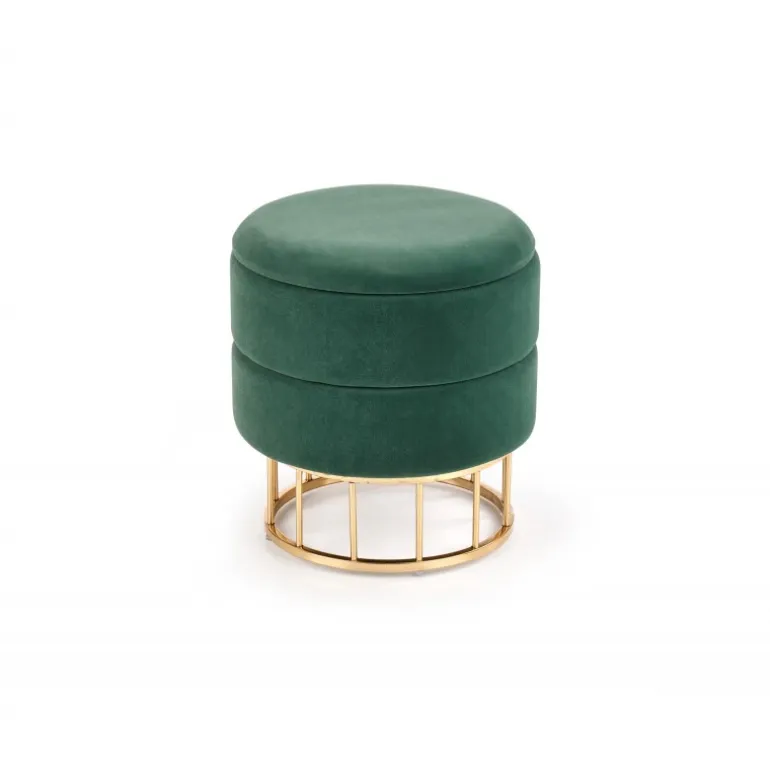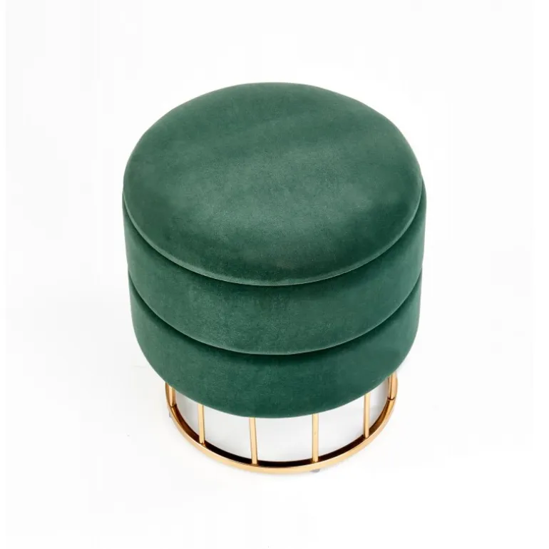 Oplev den elegante MINTY skammel i en smuk mørkegrøn farve. Denne stilfulde og moderne skammel er designet til at tilføje et strejf af luksus til dit hjem. Med sin behagelige sædehøjde på 37 cm og en total højde på 41 cm er den perfekt til både afslapning og praktisk brug. Fremstillet af kvalitetsstof og holdbart kromstål, kombinerer den både komfort og styrke. Den dybe mørkegrønne farve og gyldne detaljer gør den til et blikfang i ethvert rum.
