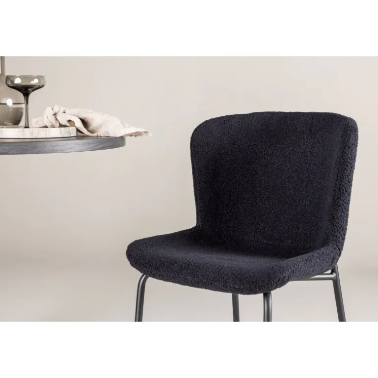 Opdag Modesto spisestuestol – en perfekt kombination af elegance og modernitet til dit spisebord. Med et sæde beklædt i blødt teddy-materiale og ben lavet af stål, tilbyder Modesto komfort. Det elegante sorte sæde matcher perfekt med de sorte ben og giver stolen et tidløst og slankt design. Med sin enkle og moderne æstetik passer Modesto perfekt ind i forskellige indretningsstile og efterlader et varigt indtryk i dit hjem. Giv din spiseplads en opdateret følelse af elegance og stil med Modesto spisestuestol. En perfekt balance mellem tidløst design og moderne detaljer, hvilket gør det til det perfekte valg for både hverdagsmiddage og festlige lejligheder.