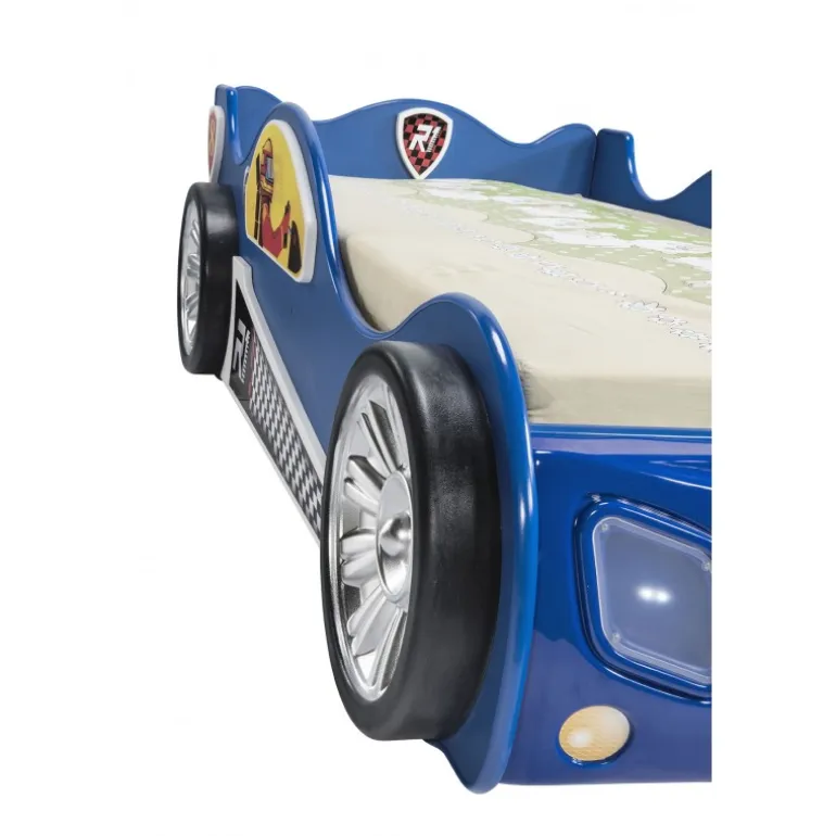 Monza Racer Blå børneseng med Madras – 90 x 190 cm