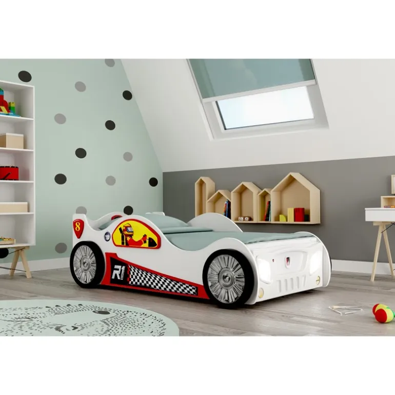 Monza Racer hvid børneseng med Madras – 90 x 190 cm