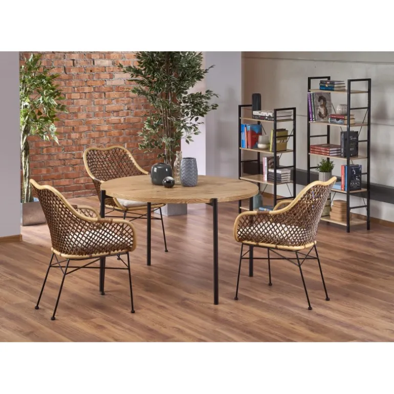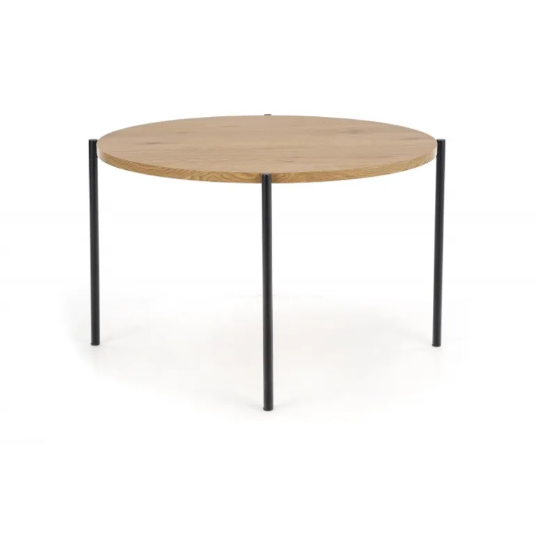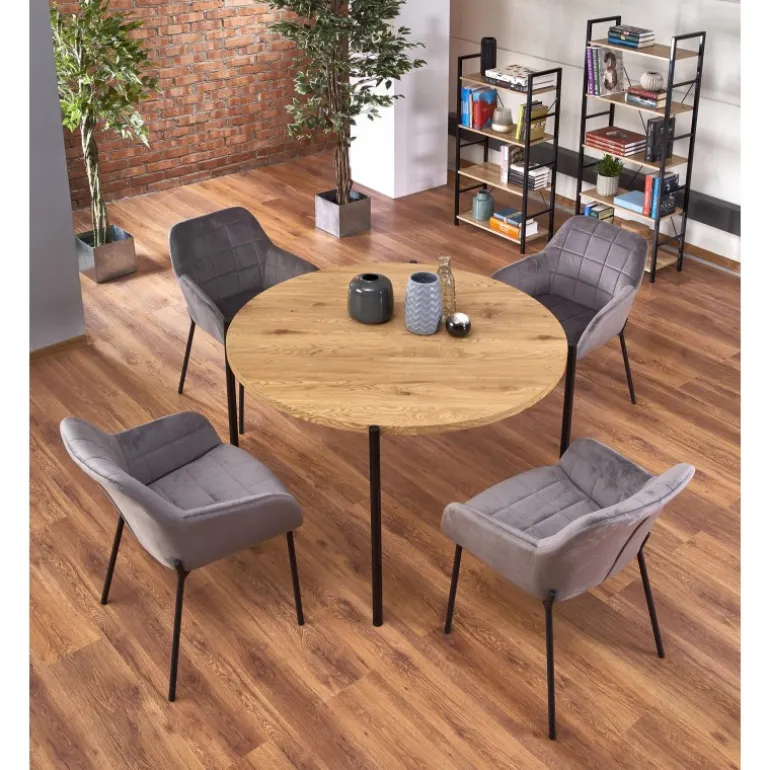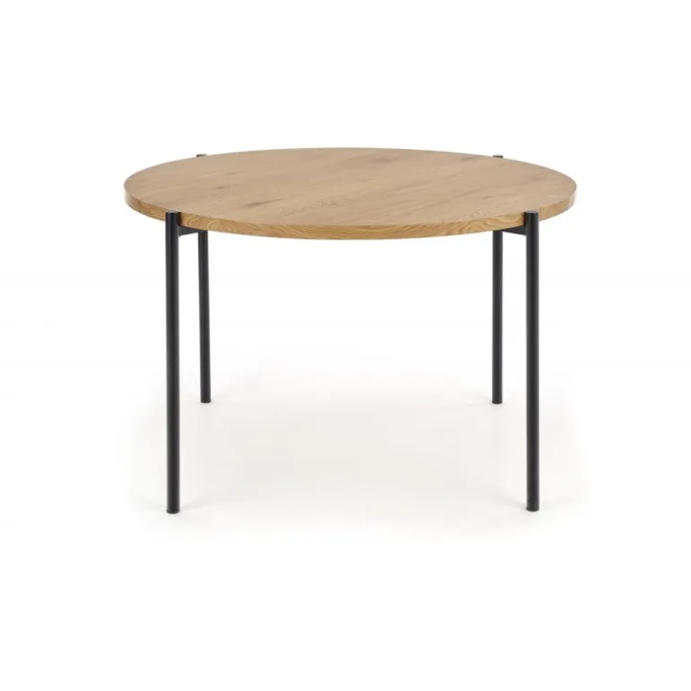Oplev den perfekte blanding af moderne design og funktionalitet med vores MORGAN bord. Dette stilfulde bord har en diameter på 120 cm og en højde på 76 cm, hvilket gør det ideelt til både spise- og arbejdsområder. Bordpladen er lavet af lamineret MDF i en elegant gylden egetræsfarve, som tilføjer et varmt og indbydende touch til ethvert rum. De Sort pulverlakerede stålben sikrer stabilitet og holdbarhed. Uanset om du søger et bord til dit køkken, spisestue eller kontor, er MORGAN bordet et fremragende valg, der kombinerer stil og funktionalitet.