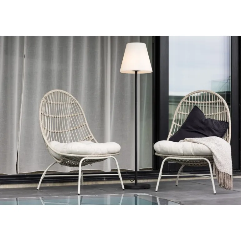 Forvandl din udendørs plads med Moris gulvlampe. Den perfekte belysningsløsning til den moderne livsstil. Med en slank ramme af stål og en skærm af holdbar plast, er Moris en kombination af form og funktion. Batteridrevet for enkelhed og fleksibilitet, giver Moris dig mulighed for at placere den præcis, hvor du har brug for lys. Ingen besværlige ledninger eller begrænsende stikkontakter er nødvendige. Moris er designet til at passe perfekt ind i udendørs omgivelser og skabe en afslappet atmosfære på din altan, terrasse eller i din have. Med sit moderne design blender Moris naturligt ind i dit udendørsmiljø. Den sorte stålramme, kombineret med den holdbare plastskærm, giver et rent og minimalistisk look, der komplementerer alle udendørs stilarter. Uanset om det er et fredfyldt øjeblik alene eller en hyggelig tid med venner og familie, vil Moris gulvlampe løfte din udendørs oplevelse til et nyt niveau af elegance og bekvemmelighed. Giv dit udendørsliv et moderne touch med Moris gulvlampe. Belysning behøver ikke være kompliceret – det skal bare være smukt og funktionelt.