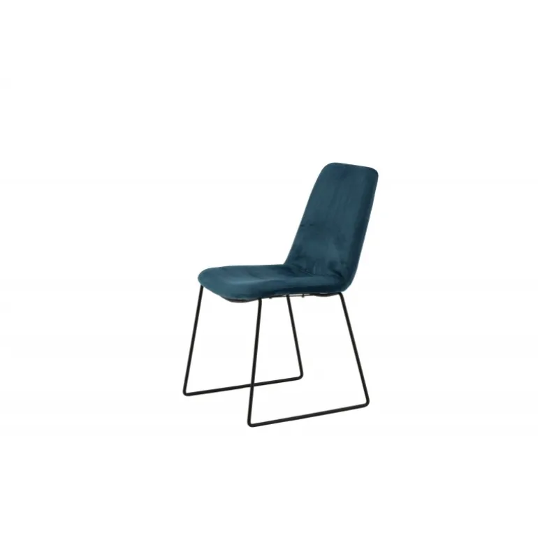 En diskret farveprik, der vil løfte dit interiør til næste niveau! Denne elegante spisebordsstol fra Muce-serien har slanke ben i sort pulverlakeret metal. Ryglænet er blidt afrundet og fuldt polstret i blåt fløjlstof. Lad dette øjeblik være dagens højdepunkt! Nogle dele skal samles. Plejeinstruktioner: Brug tekstilspray til at imprægnere stoffet før brug; dette vil også gøre det lettere at fjerne snavs og pletter i fremtiden. Fjern pletter straks, gnid ikke, men forsøg at duppe dem forsigtigt op med en klud.