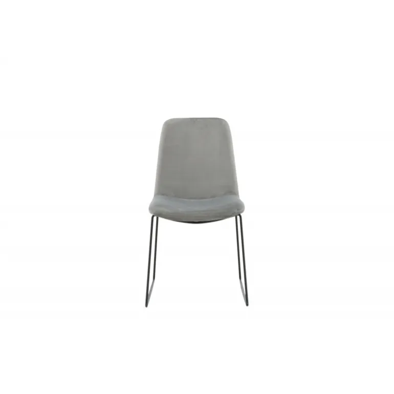 Så moderne som tidløs! Muce er en stilfuld spisestuestol i fuldt beklædt minimalistisk design i en behagelig grå farve! Den smalle benstand er i sort pulverlakeret metal. Ryg og sæde er i gråt fløjl med blød polstring for ekstra komfort. Let montage kræves. Inviter til hyggelige måltider fremover! Plejeråd: Brug tekstilspray til at imprægnere tekstilet, før du begynder at bruge det; det vil også gøre det nemmere at fjerne snavs og pletter i fremtiden. Fjern pletter med det samme, gnid ikke, men forsøg at suge forsigtigt op med en klud.