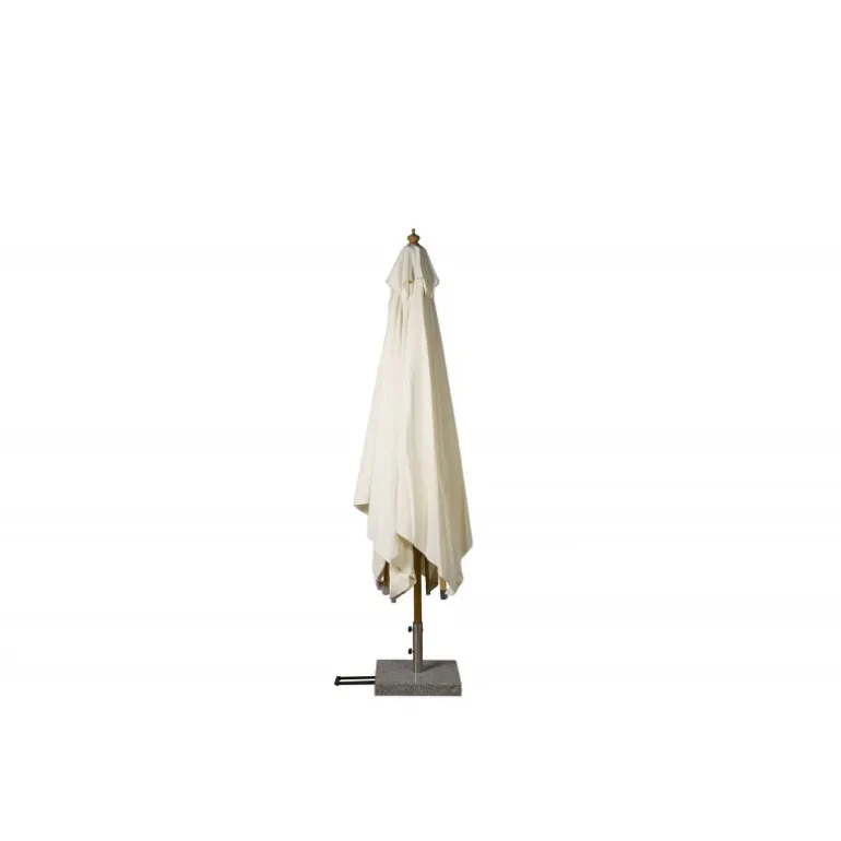 Oplev komfort og beskyttelse med vores Naxos Parasol. Denne flotte hvide parasol i kvadratisk form beskytter dig effektivt mod solen gennem hele sommersæsonen. Fremstillet af holdbart polyester, kombineret med bøgetræ og plast, tilbyder denne parasol både stil og funktionalitet til din udendørs indretning. Parasolens stof er snavs- og vandafvisende, hvilket gør den let at vedligeholde. Husk at bruge en parasolovertræk, når den ikke er i brug, for at beskytte stoffet mod solblegning og forlænge levetiden.