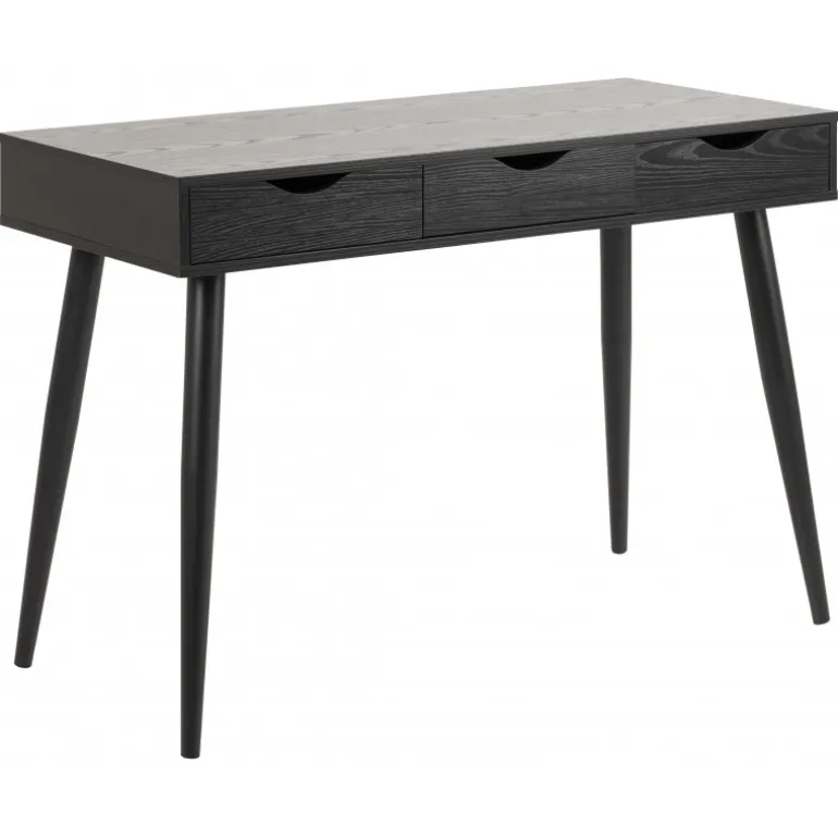 Neptun skrivebord melamin ask sort, skuffer 3 stk, sort, stel metal pulverlakeret, mat sort L:110 B:50 H:77,1 cm