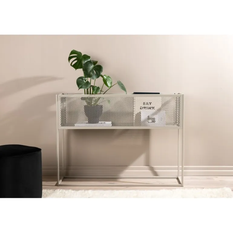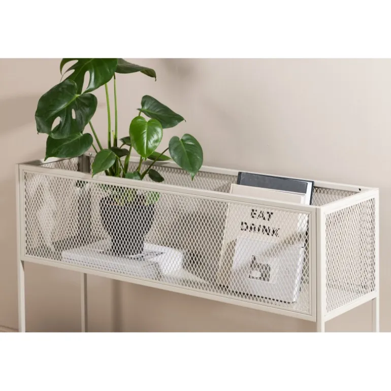 Indret dit hjem moderne og smart med hjælp fra Netz hylde! Denne delikate sidebord/hylde har et slankt industrielt design med en hylde til opbevaring, net rundt om hele opbevaringsfladen og smalle høje ben i beige stål. Den fleksible størrelse og elegante ydre gør det nemt at placere hylden, og den passer godt ind i de fleste rum i hjemmet. Indret efter dine egne behov og ønsker med smukke dekorationer, blomster eller andet, der skal opbevares – kun fantasien sætter grænser!