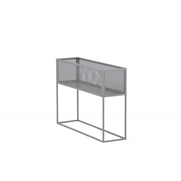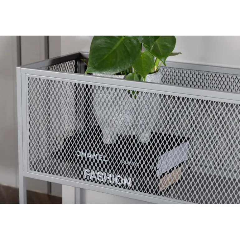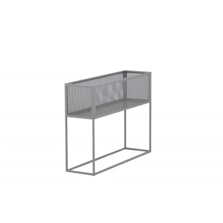 Indret hjemmet moderne og smart med hjælp af Netz relief hylde! Denne lækre sidebord/hylde har et slankt industrielt design med en hylde til opbevaring, net sider rundt om hele opbevaringsfladen og smalle høje ben i gråt stål. Den fleksible størrelse og elegante ydre gør det nemt at placere og passer godt ind i de fleste rum i hjemmet, så indret efter dine egne behov og ønsker og dekorer med smukke dekorationer, blomster eller andet, der skal opbevares – kun fantasien sætter grænser!