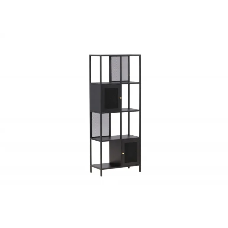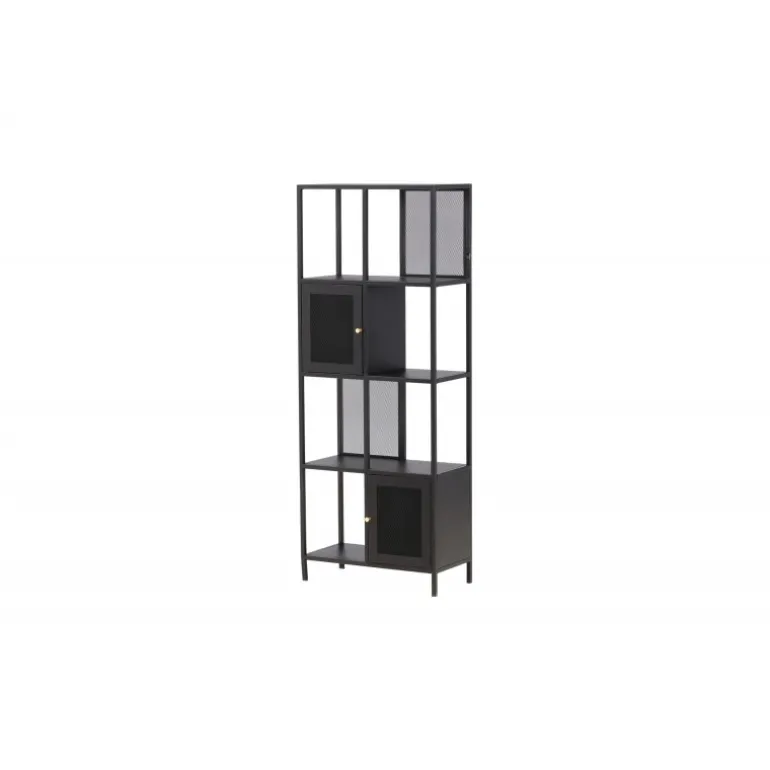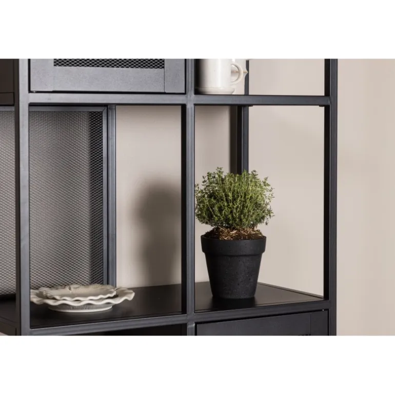 Dekorer dit hjem både smart og stilfuldt med vores populære skab fra serien Netz! Netz er den perfekte hylde i et højt og smalt design, der muliggør både åben og skjult opbevaring på sine fire hylder. Der er to rum med netdøre og messingfarvede knopper – fremragende til alt, der skal opbevares skjult. Andre hylder er åbne og perfekte til opbevaring af porcelæn eller smukke dekorationer, der skaber den perfekte hjemlige følelse. Se vores billeder for inspiration!