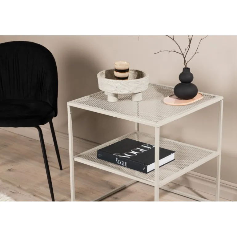 Denne sidebord klatrer på trendlisterne! Netz er et moderne og praktisk sidebord i beige stål med et industrielt udtryk og lige design. Med sine stilfulde former tilføjer bordet en moderne og luftig følelse til rummet og er utroligt nyttigt som aflastningsflade, piedestal eller sidebord. Den firkantede og pæne størrelse gør bordet nemt at placere og flytte rundt i hjemmet. Der er også en smart hylde i gitter, som fungerer fantastisk til lettere opbevaring eller dekorationer. Perfekt til dem, der leder efter et flot aflastningsbord eller en flot indretningsdetalje!