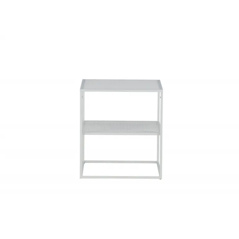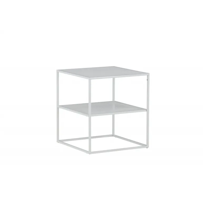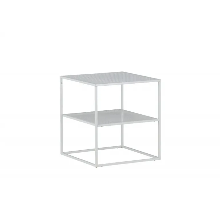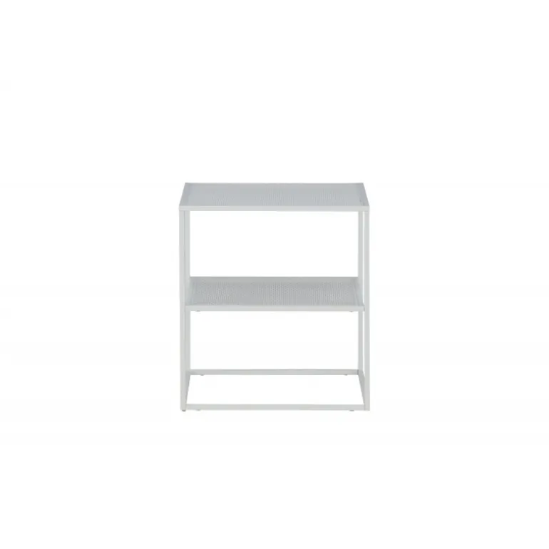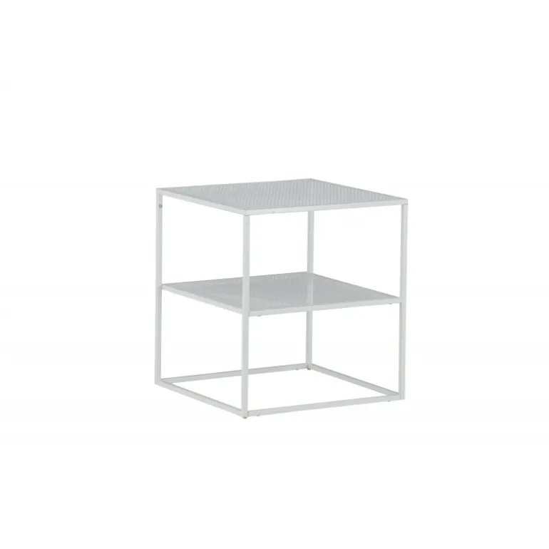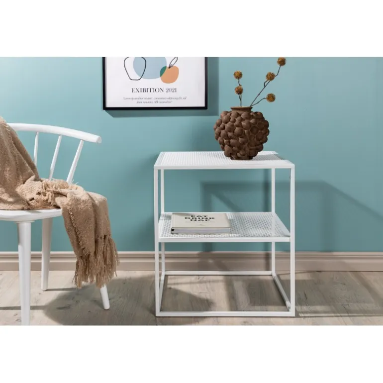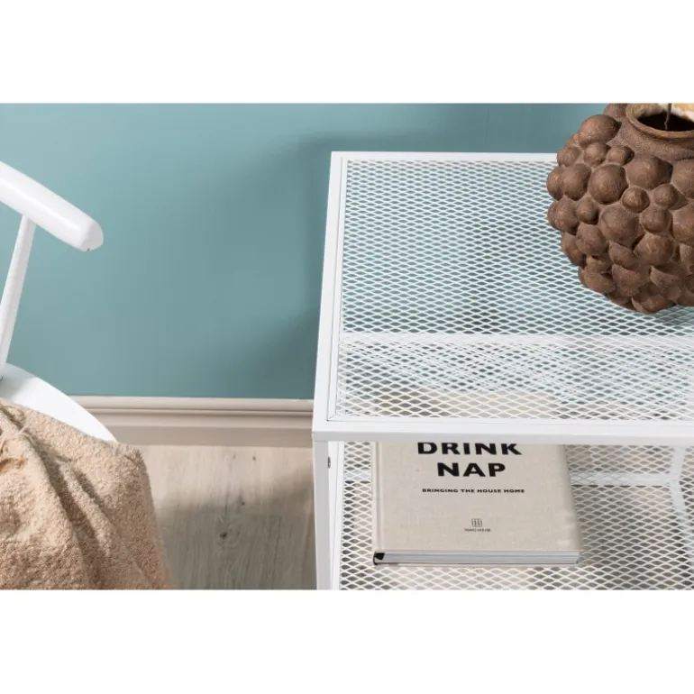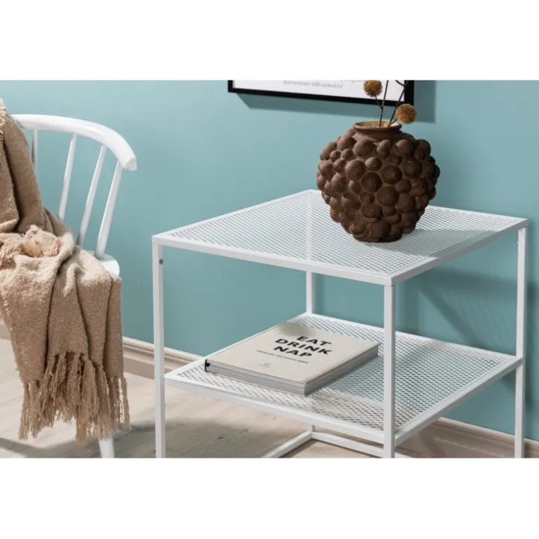 Dette sofabord klatrer på trendlisterne! Netz er et moderne og praktisk sofabord i hvidt stål med et industrielt udtryk og lige design. Med sine stilfulde former tilføjer bordet en moderne og luftig fornemmelse til rummet og er utroligt anvendeligt som aflastningsbord, piedestal eller sidebord. Den kvadratiske og pæne størrelse gør bordet nemt at placere og flytte rundt i hjemmet. Der er også en smart gitterhylde, som fungerer godt til lettere opbevaring eller dekorationer. Perfekt til dem, der søger et flot aflastningsbord eller en pæn interiørdekoration!