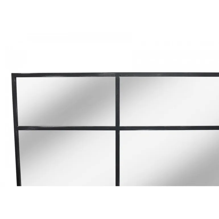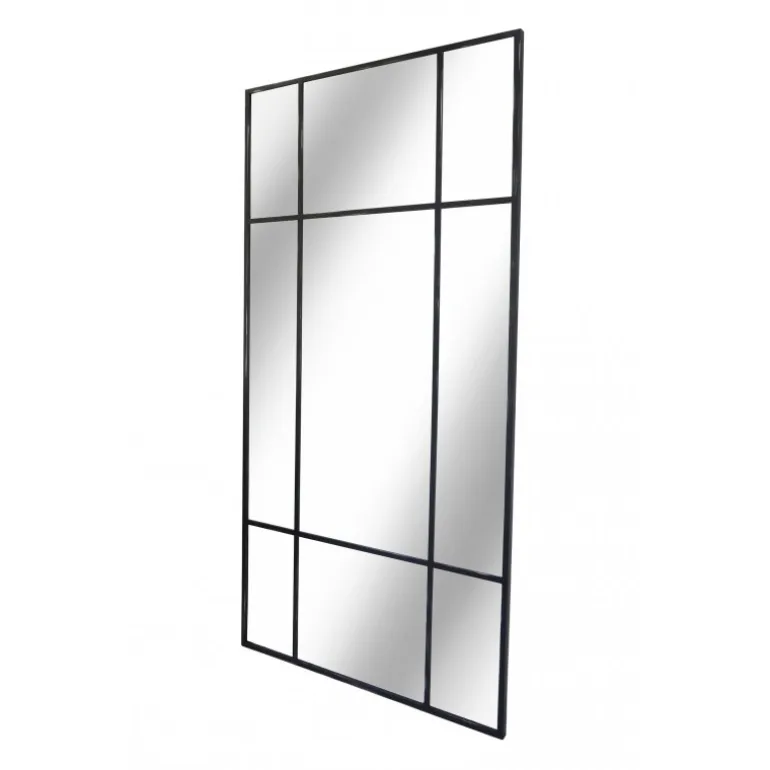 Stort spejl til ophæng på væg med antiksort (silver brush) jernramme. Spejlet kan både stå på gulvet og hænges op vandret eller lodret.
