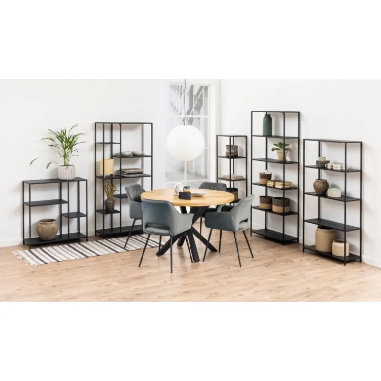 Newcastle bogreol metal pulverlakeret ru mat sort, hylde 5 stk L:69,5 B:30 H:185 cm