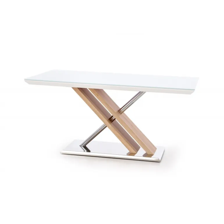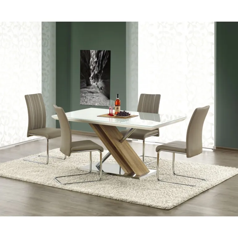 Oplev NEXUS-bordet i en elegant kombination af ekstra hvidt glas og sonoma eg. Med dimensionerne 160/90/76 cm passer dette bord perfekt ind i både moderne og klassiske indretninger. Fremstillet af glas, lakeret MDF, lamineret MDF, kromstål og rustfrit stål, sikrer NEXUS både holdbarhed og stil. Uanset om det bruges som spisebord eller arbejdsbord, giver det et tidløst udseende og funktionalitet til dit rum.