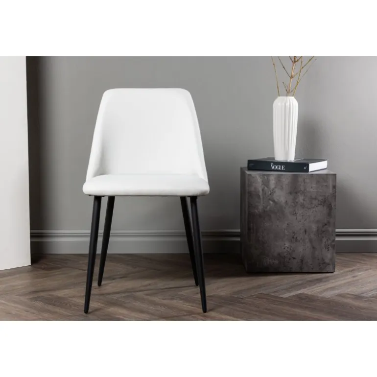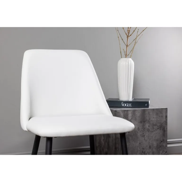 En spisestol, der fanger blikket og imponerer med sit skandinaviske design! Denne stol fra Night-serien har et fuldt polstret sæde i hvid PU, som føles lige så luksuriøst som elegant. Stolens ben er lavet af sort stål, og sædet er polstret for ekstra komfort. Sid behageligt og nyd dejlige måltider fremover!