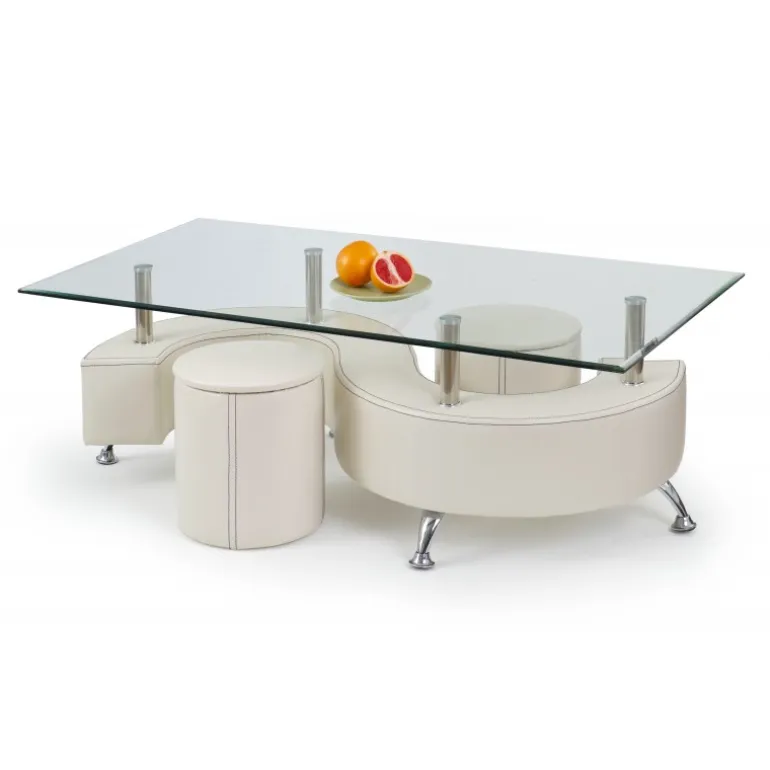 NINA 3 H sofabord i hvid er den perfekte tilføjelse til enhver moderne stue. Dette elegante sofabord kommer med praktiske pouffer og er fremstillet af højkvalitetsmaterialer: glas, kromstål og PVC. Bordet har dimensionerne 130/70/55 cm og en flot hvid finish, der passer til enhver indretningsstil. Med sin robuste konstruktion og stilfulde design er det både funktionelt og æstetisk tiltalende, hvilket gør det til et must-have møbel i dit hjem.