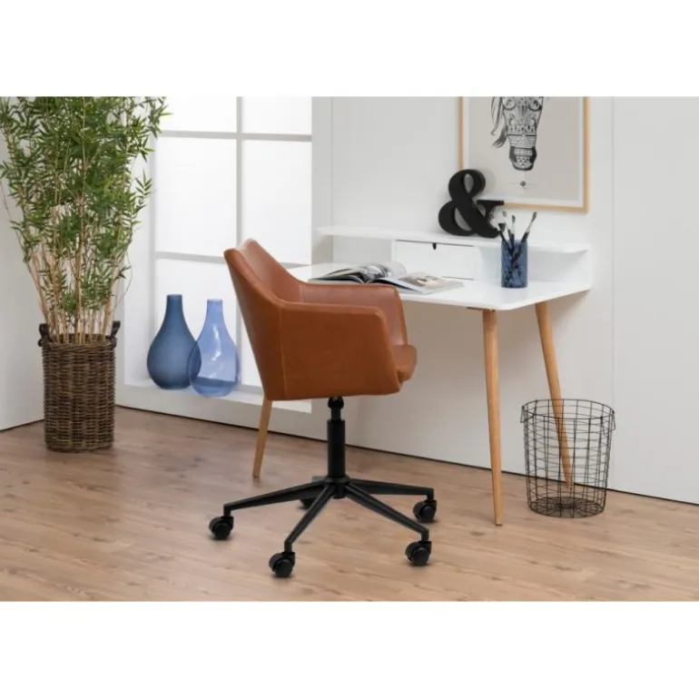 Den perfekte skrivebordsstol til hjemmekontoret. Stolen er moderne og stilfuld med en klassisk silhuet. Det polstrede sæde og de forsænkede armlæn giver komfort under lange arbejdsdage. Højdejusterbart sæde, drejefunktion og bremsehjul sikrer fleksibilitet.