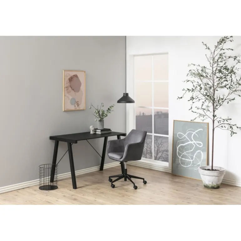 Den perfekte skrivebordsstol til hjemmekontoret. Stolen er moderne og stilfuld med en klassisk silhuet. Det polstrede sæde og de forsænkede armlæn giver komfort under lange arbejdsdage. Højdejusterbart sæde, drejefunktion og bremsehjul sikrer fleksibilitet.