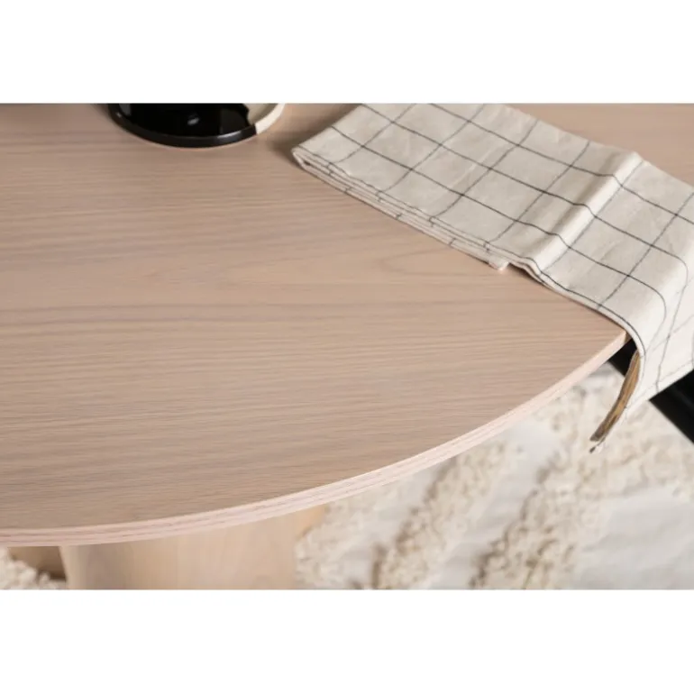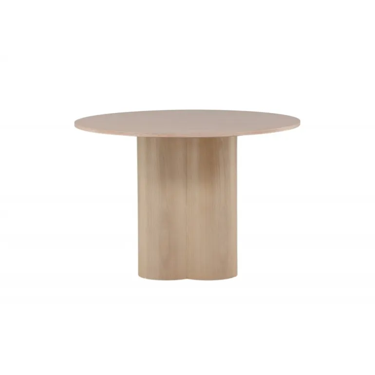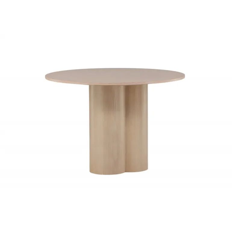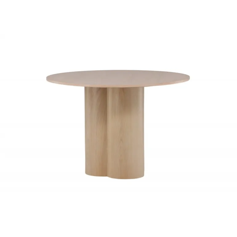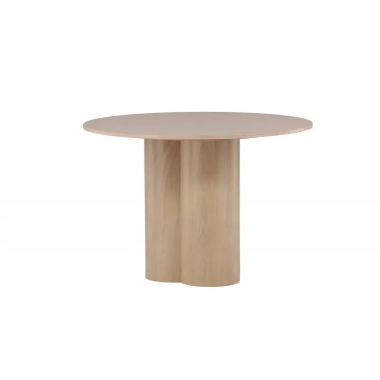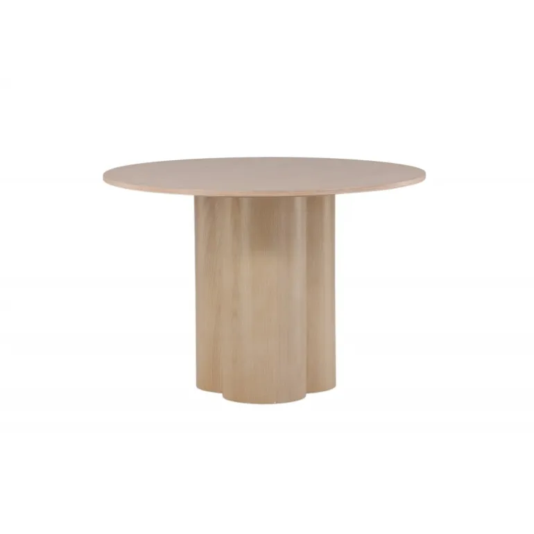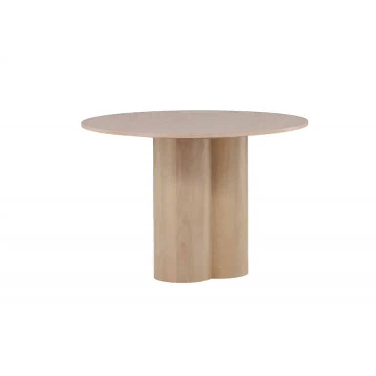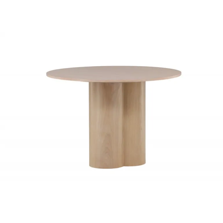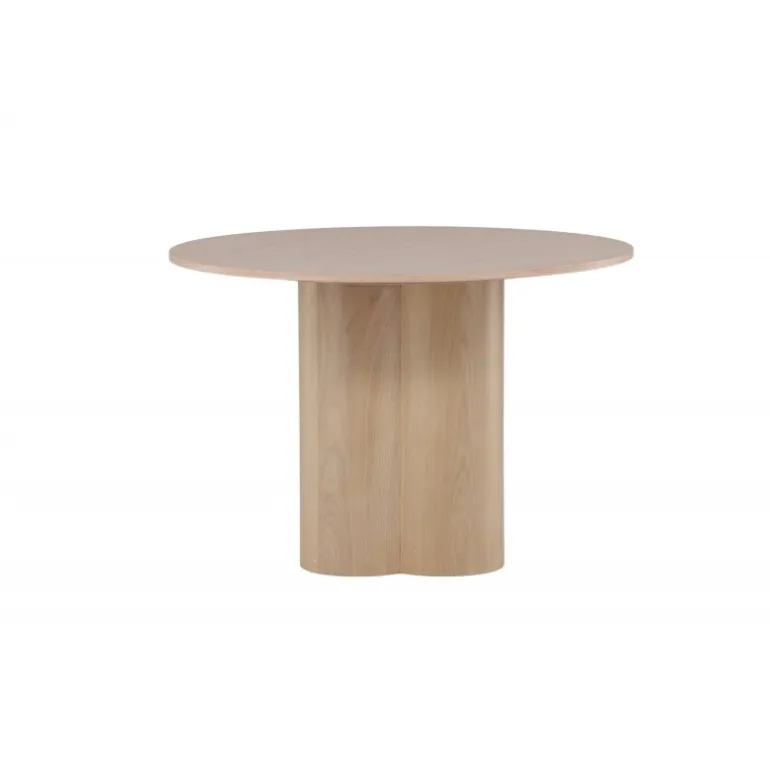 Olivia spisebord imponerer med sit skandinaviske design og smagfulde udseende! Rundt spisebordet har et ensartet design i hvidmalet MDF med en tynd, rund bordplade og tre cylindriske ben, der samles under midten af bordet. Farven har en let dækning på den finérbelagte plade, hvilket gør materialet synligt og giver liv og bevægelse til bordet. Skab en stilfuld blikfanger i hjertet af hjemmet – her ender ingen på kanten!