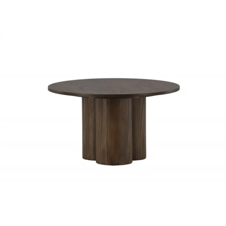 Tag din indretning til næste niveau med et sofabord, der klatrer op ad trendlisterne! Olivia sofaborde er lavet af MDF med finer i en slank Mocca-farve og har en cylindrisk struktur, som skaber en lækker dimension til bordet. Den runde topplade er fineret, og kroppen består af tre cylinderformede ben, samlet under midten af bordet. Bordet er utroligt anvendeligt både som sofabord eller sidebord, og den pæne størrelse gør bordet nemt at placere og flytte rundt i hjemmet. Her får du et moderne sidebord, der imponerer med sine bløde former, stilfulde design og trendsikre farve!