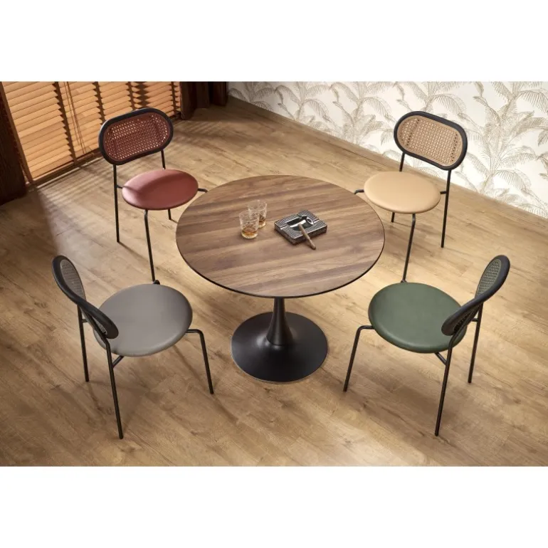 OLMO rund bord i valnød og Sort er det perfekte valg til dit hjem. Med en diameter på 90 cm og en højde på 73 cm passer denne stilfulde bord til både små og store rum. Bordpladen er lavet af holdbart laminat MDF, mens benene er fremstillet af pulverlakeret stål for ekstra stabilitet. Dette bord kombinerer moderne design med funktionalitet og holdbarhed, hvilket gør det til et ideelt valg for enhver indretning.