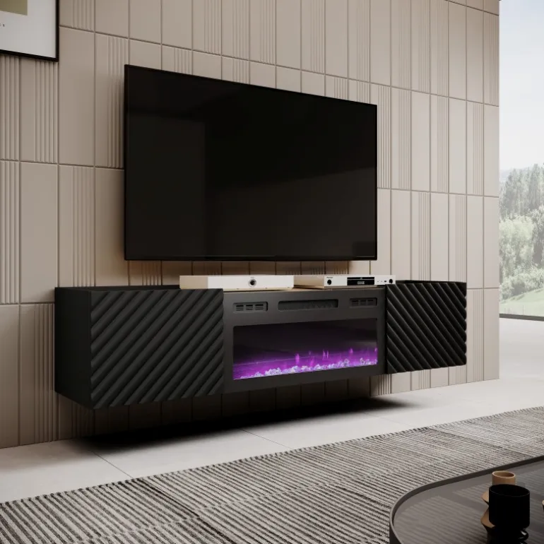 ONDA TV bord EF er den perfekte løsning til dit moderne hjem. Denne alsidige TV bord leveres med pejs Med sit stilfulde design og funktionelle konstruktion, passer den perfekt ind i enhver stue. Den er fremstillet af lamineret spånplade og milled MDF, hvilket sikrer holdbarhed og langvarig brug. ONDA TV bord EF leveres med blødlukkende hængsler og stålben, der giver stabilitet og elegance.