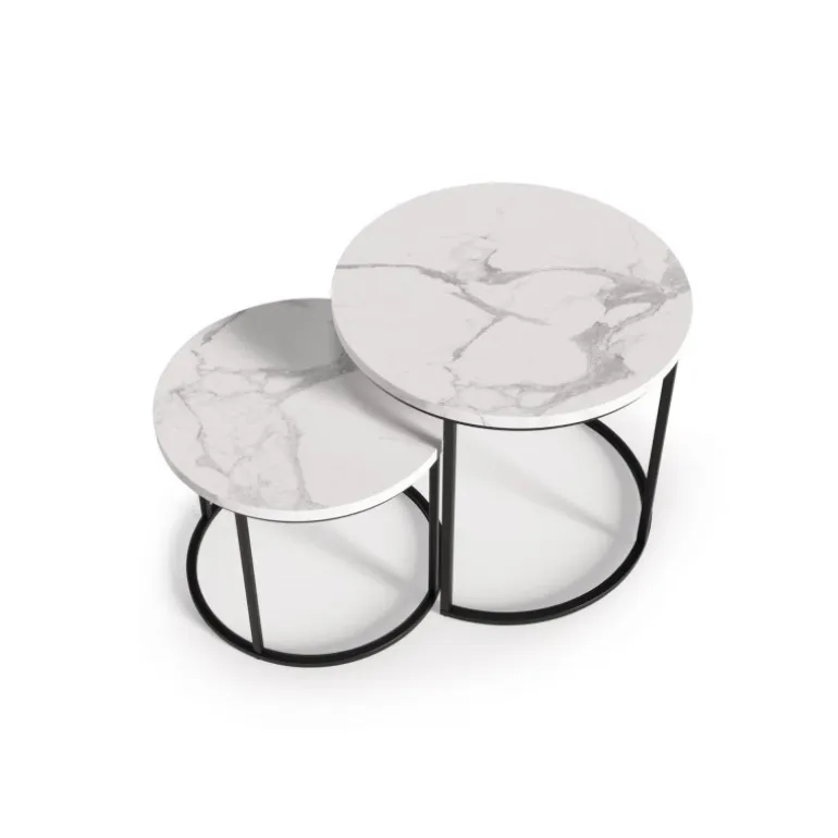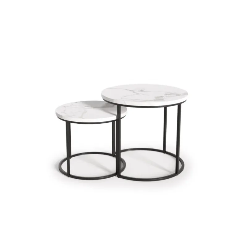 Oplev elegance og funktionalitet med OREO Sæt af To Sofaborde i hvid marmor og Sort. Disse borde er designet til at tilføje et stilfuldt touch til dit hjem. OREO sofabordene er fremstillet af lamineret MDF og pulverlakeret stål, hvilket sikrer holdbarhed og langvarig brug. Med deres moderne design og tidløse farvekombination passer de perfekt ind i enhver indretning. De to borde kommer i forskellige størrelser, hvilket giver dig fleksibilitet til at arrangere dem efter behov.