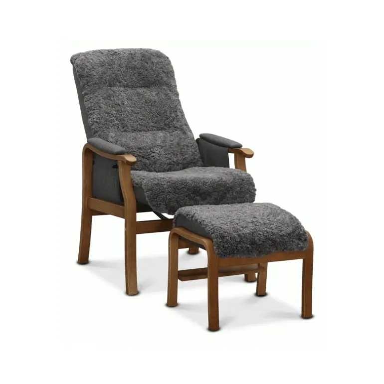 Bergen reclinerlænestol er et ideelt valg for dig, der ønsker høj komfort, enkel betjening og et elegant design – uden brug af el – kombineret med luksuriøst fåreskind og solid håndværkskvalitet.