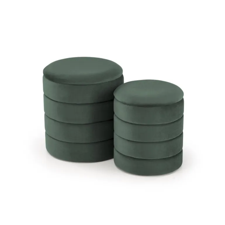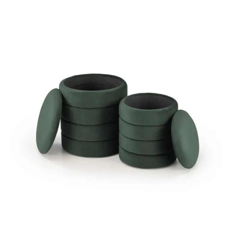Opdag den unikke og stilfulde PACHO sæt af to i en elegant mørkegrøn farve. Dette sæt byder på to moderne stykker fritidsmøbler med opbevaringsfunktion, hvilket gør det både praktisk og æstetisk tiltalende. Med dimensionerne 40/44 cm og 33/39 cm passer de perfekt til ethvert rum. Lavet af blødt, luksuriøst velour stof, tilbyder disse møbler både komfort og elegance, der vil hæve dit hjems indretning.